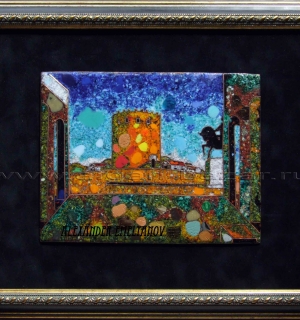 Панно с каллиграфической надписью на османо-турецком языке: بو د گچر یا هو (bu da geçer Ya Hu). Медь, горячая перегородчатая эмаль. Автор исполнения - Александр Емельянов