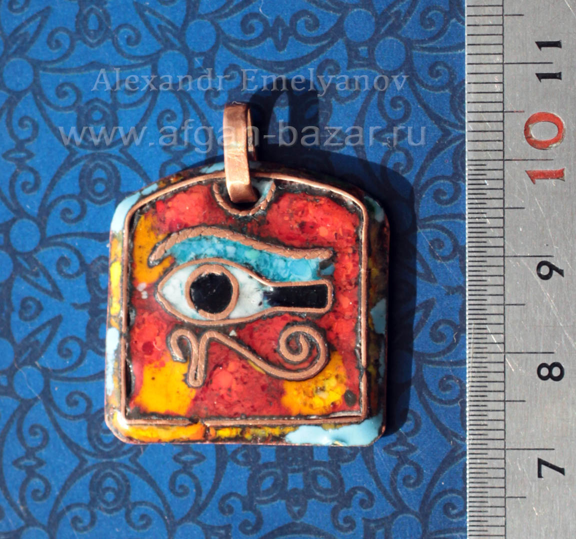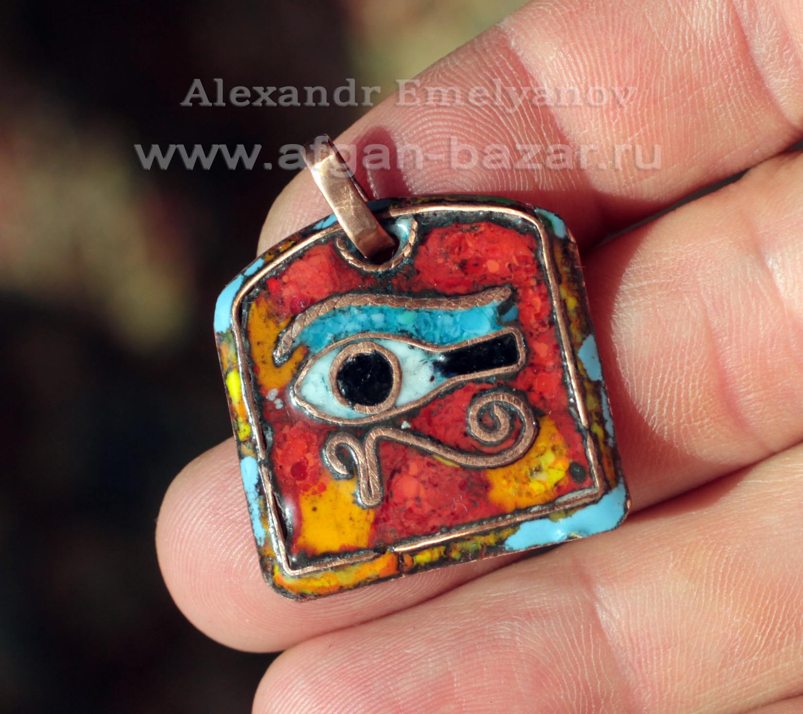 Кулон-амулет в древнеегипетском стиле "Око Ра". Автор - Александр Емельянов. Медь, горячая перегородчатая эмаль