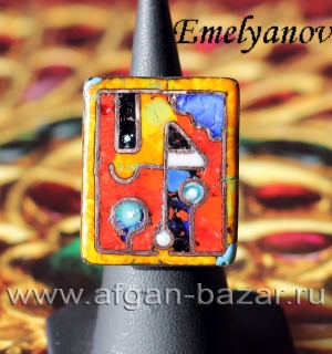 Традиционное мультанское кольцо с горячей эмалью. Пакистан, Мультан, вторая половина 20 в. Размер - 15,5+