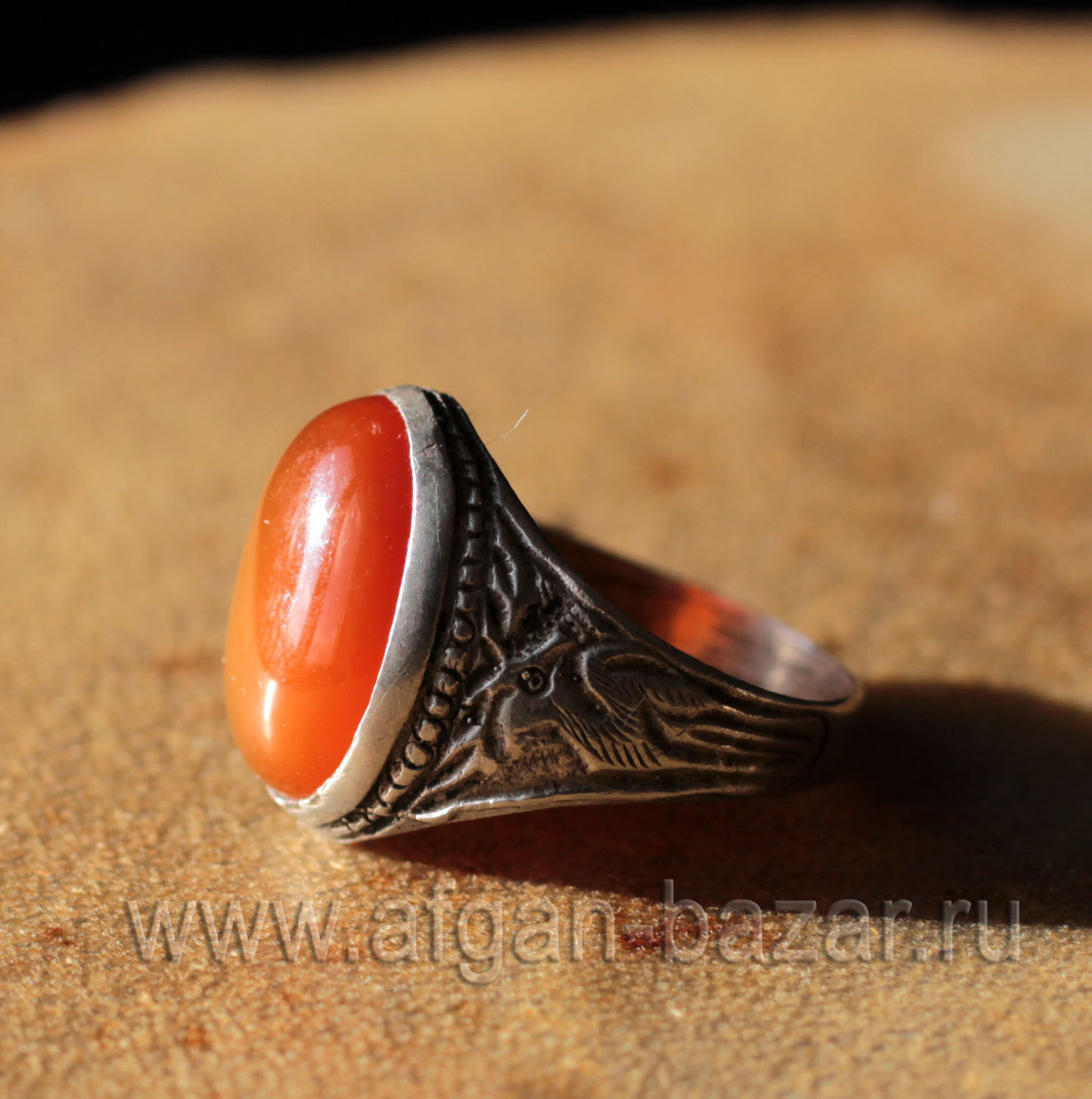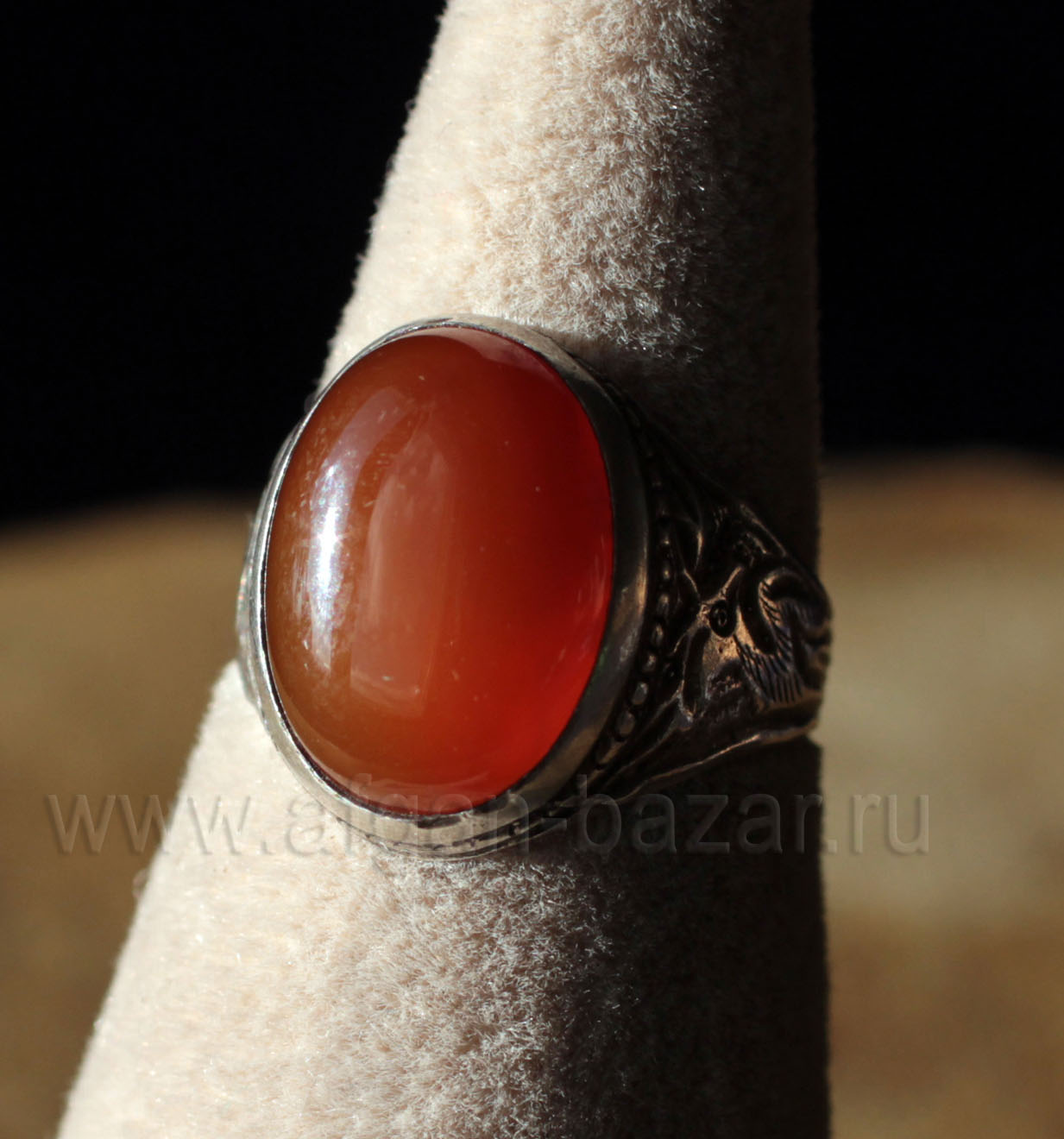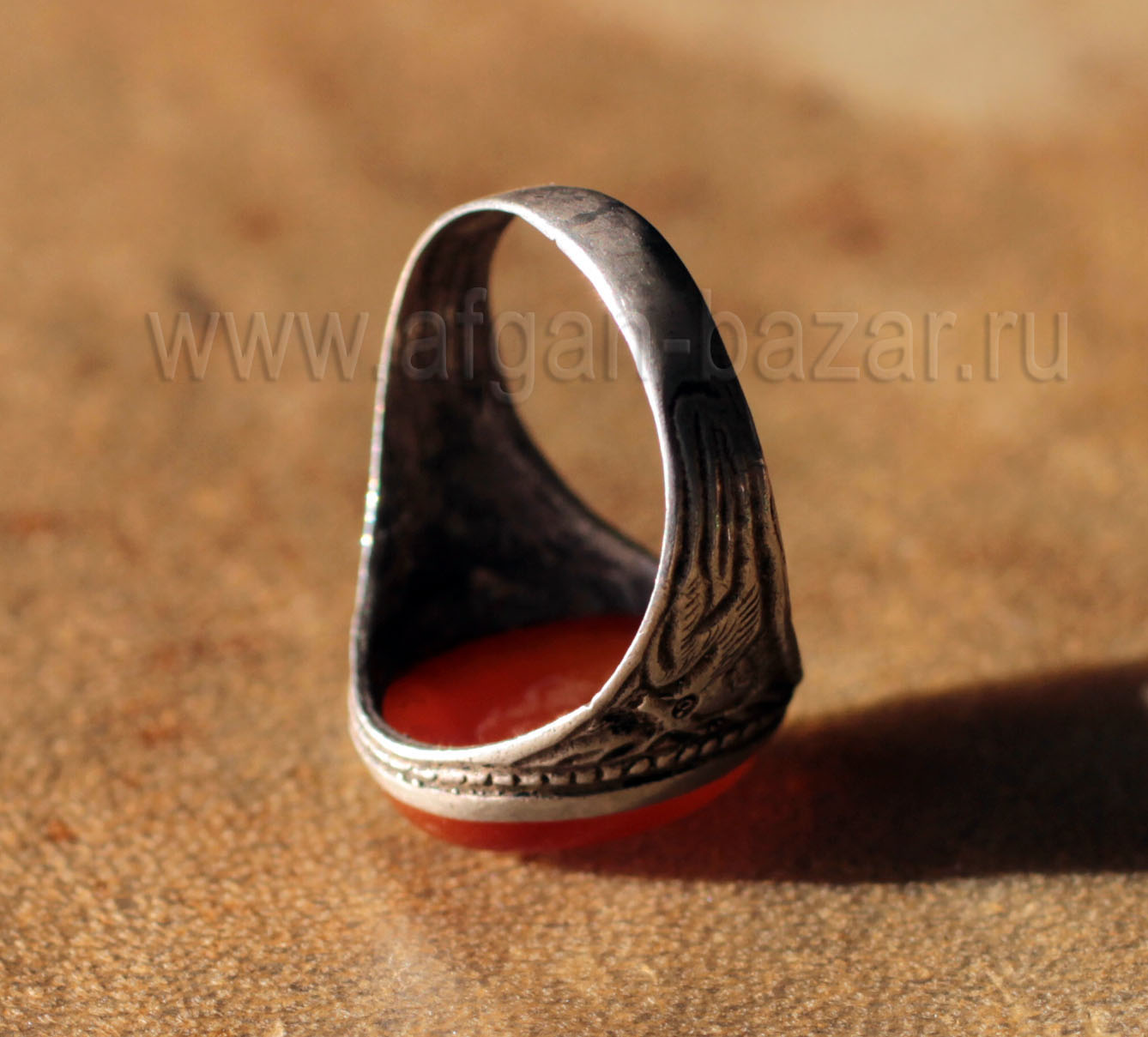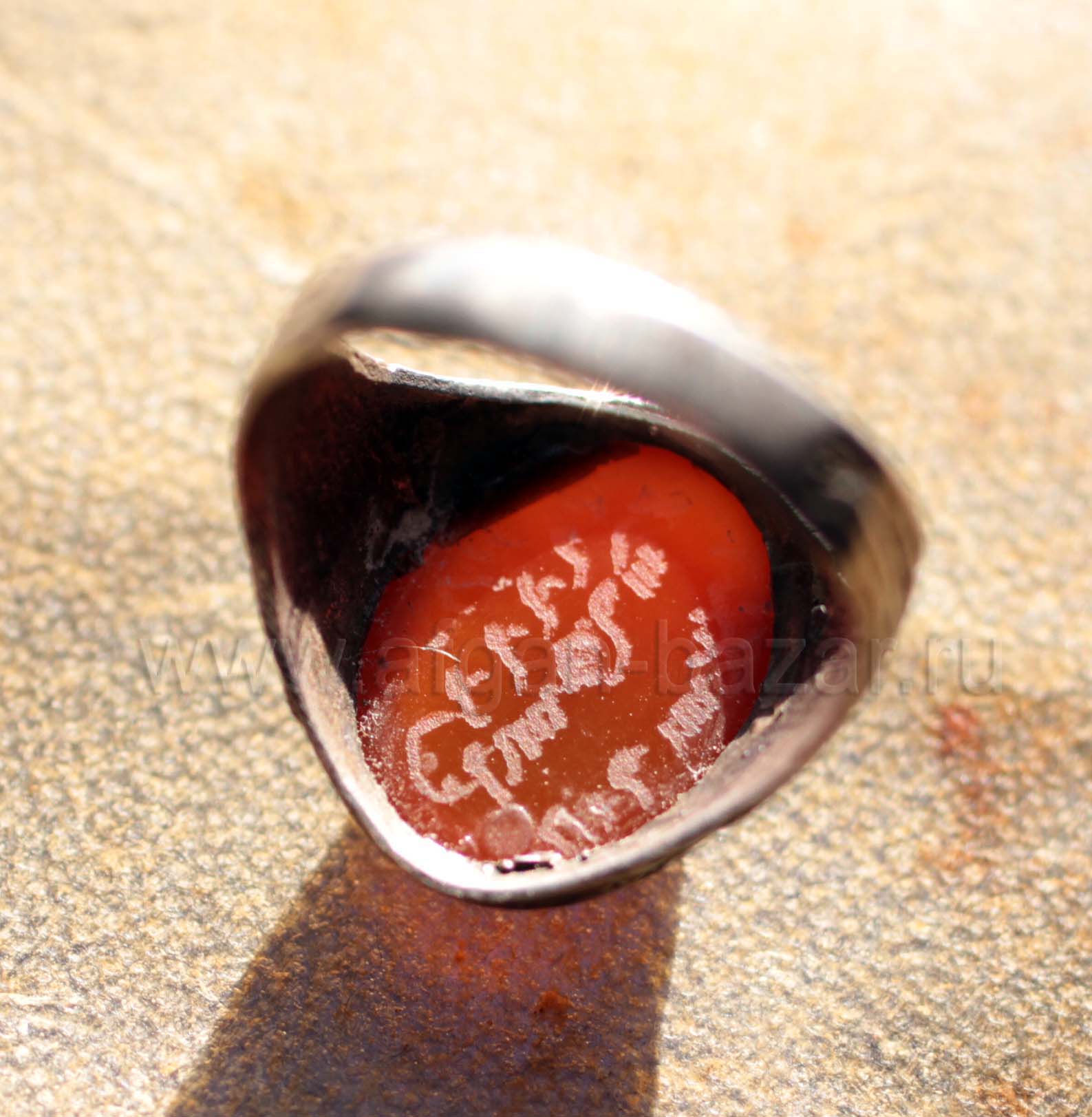 Иранский перстень-амулет с сердоликом и магическими символами на обратной стороне камня. Размер - 18,5