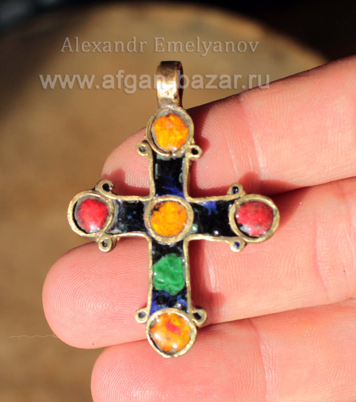 Кулон-крест в византийском стиле по мотивам средневековых украшений с горячей эмалью. Авторы - Кухарев Кирилл (металл, литье), Емельянов Александр (горячая эмаль)