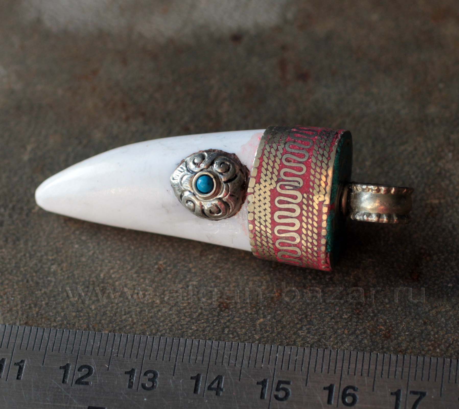 Непальская подвеска-амулет в виде клыка, из раковины Шанкха.