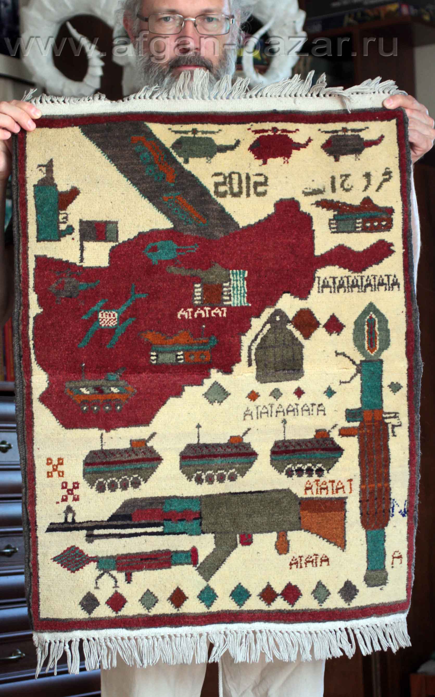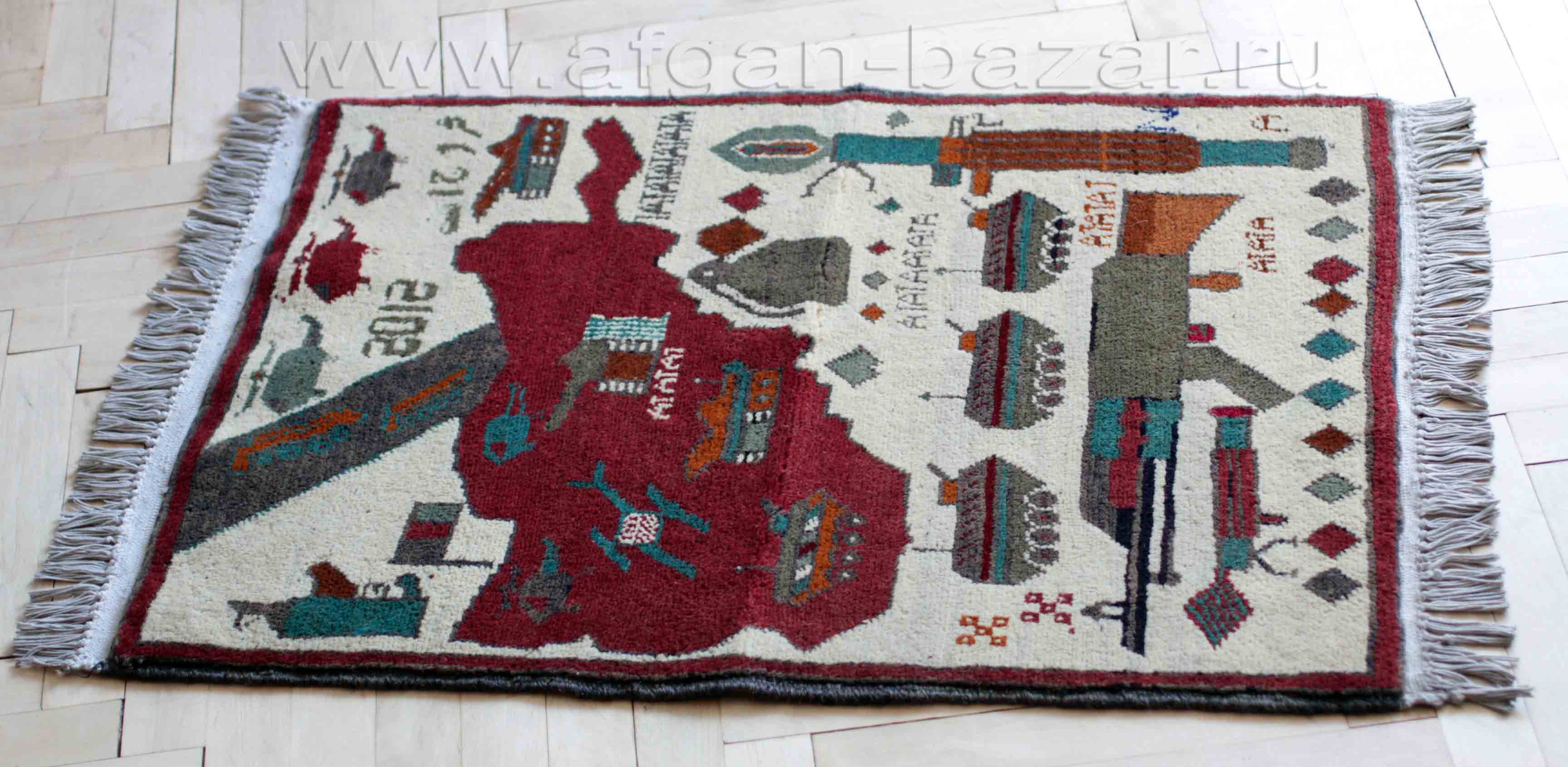 Афганский шерстяной ковер ручной работы с милитаристской символикой.