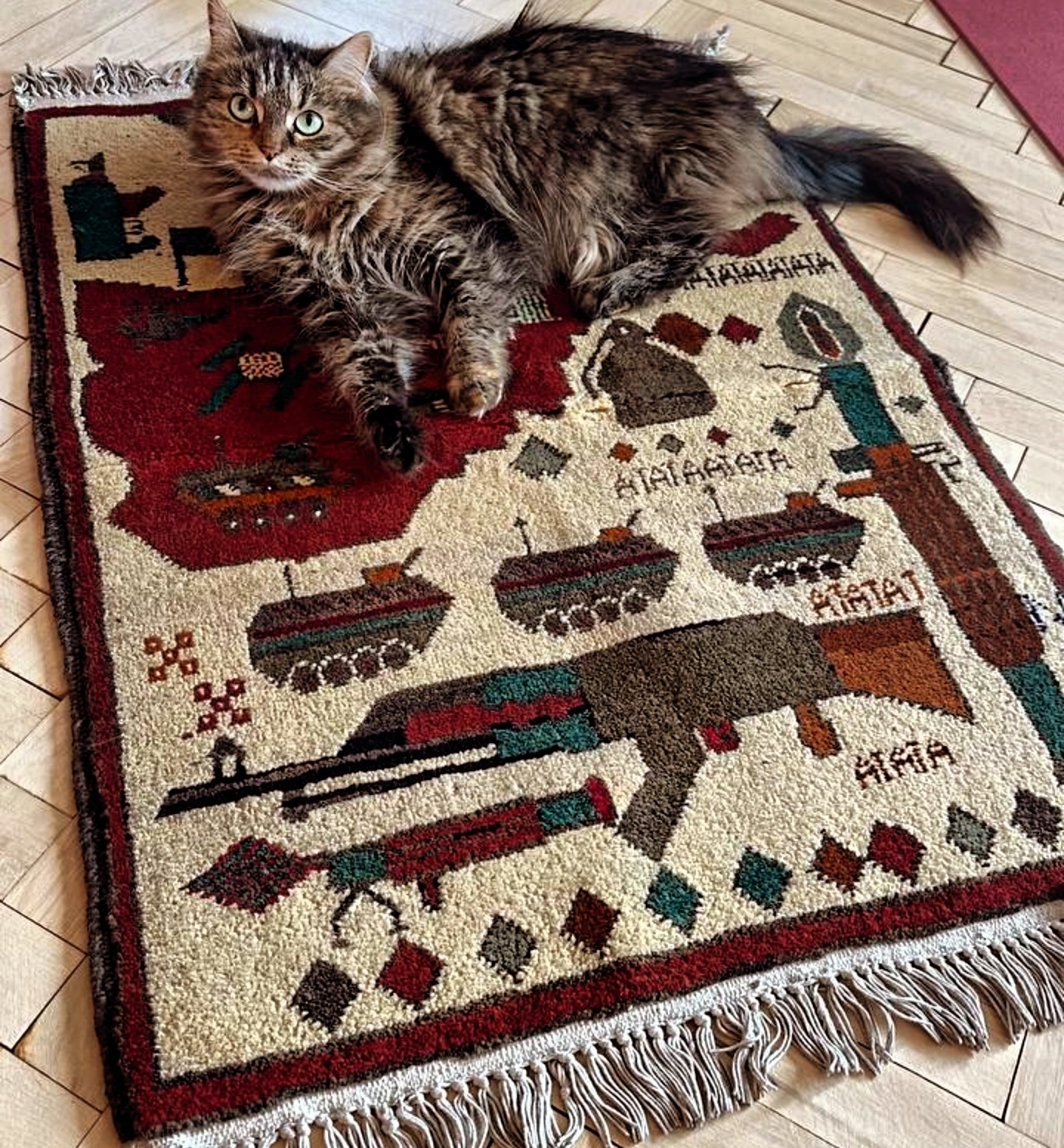 Подобные ковры изготавливают в Кабуле и Гердесе с начала 1990-х гг для продажи в туристических лавках. Они посвящены военной истории 1980-2000-х гг.