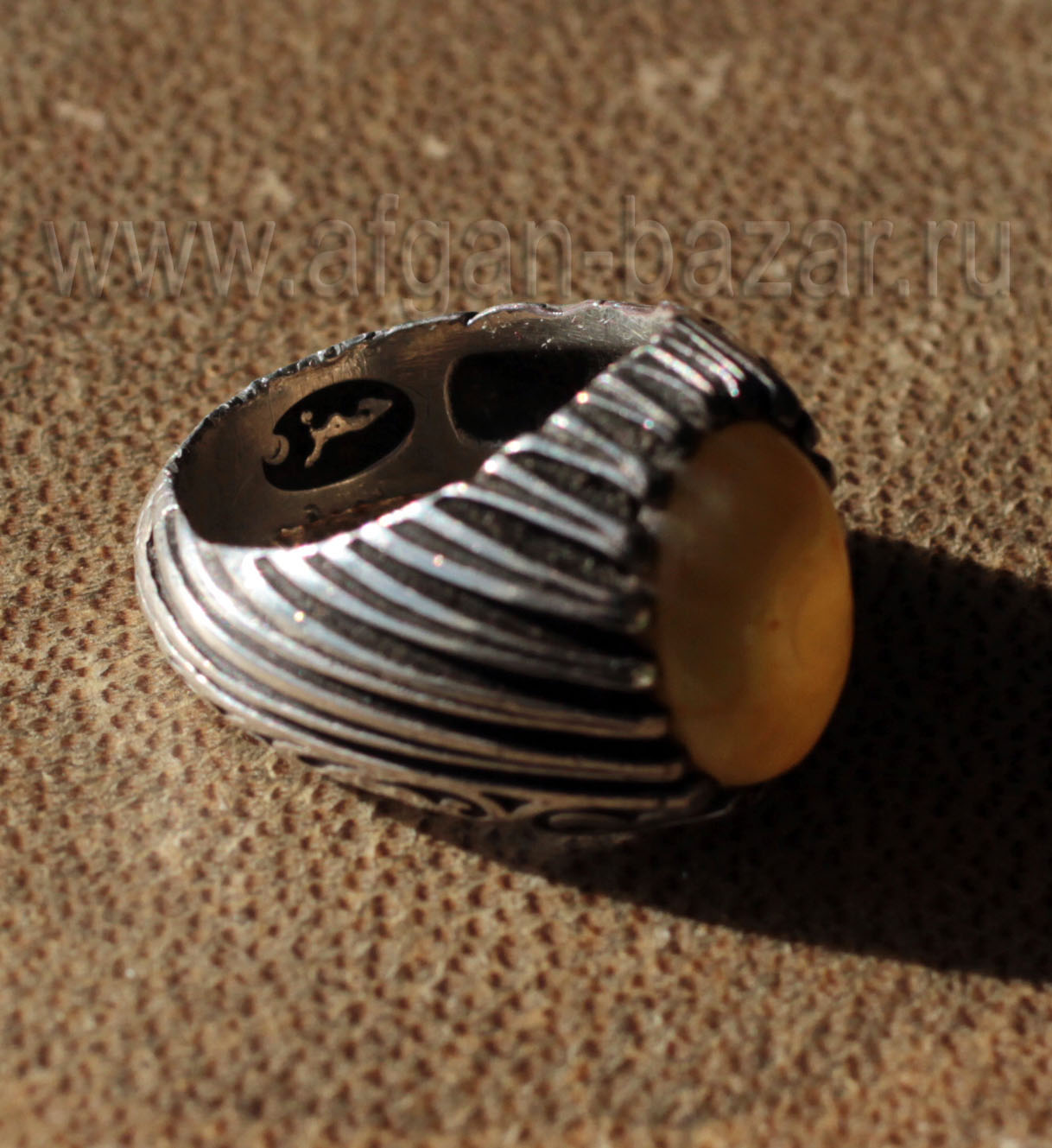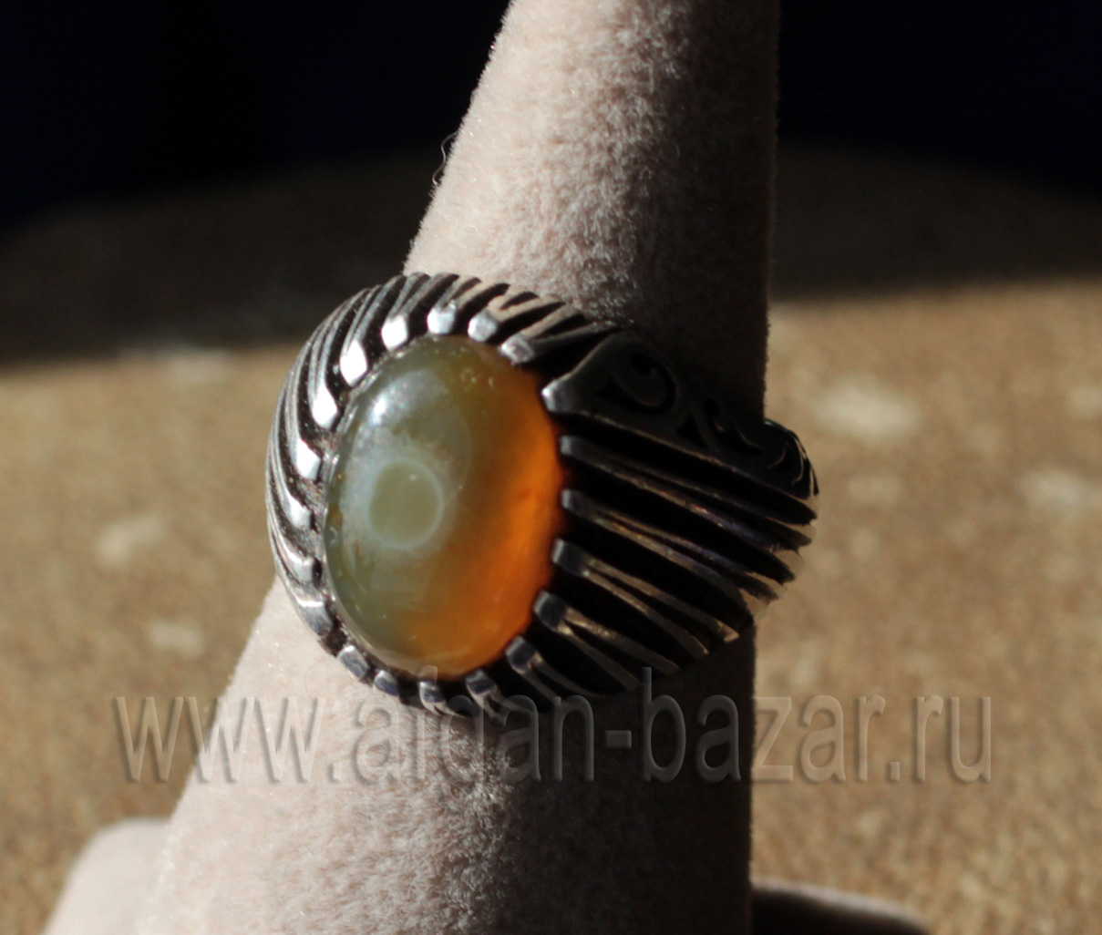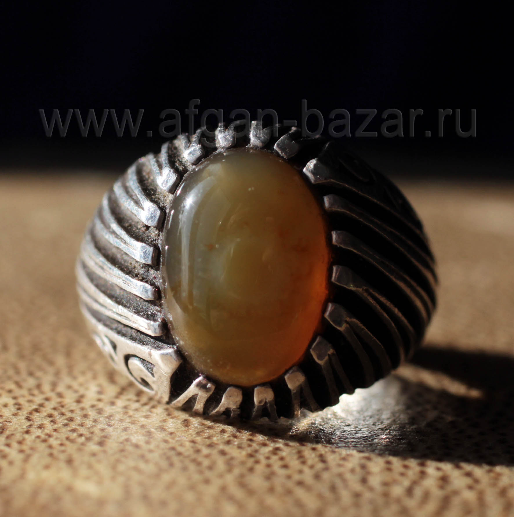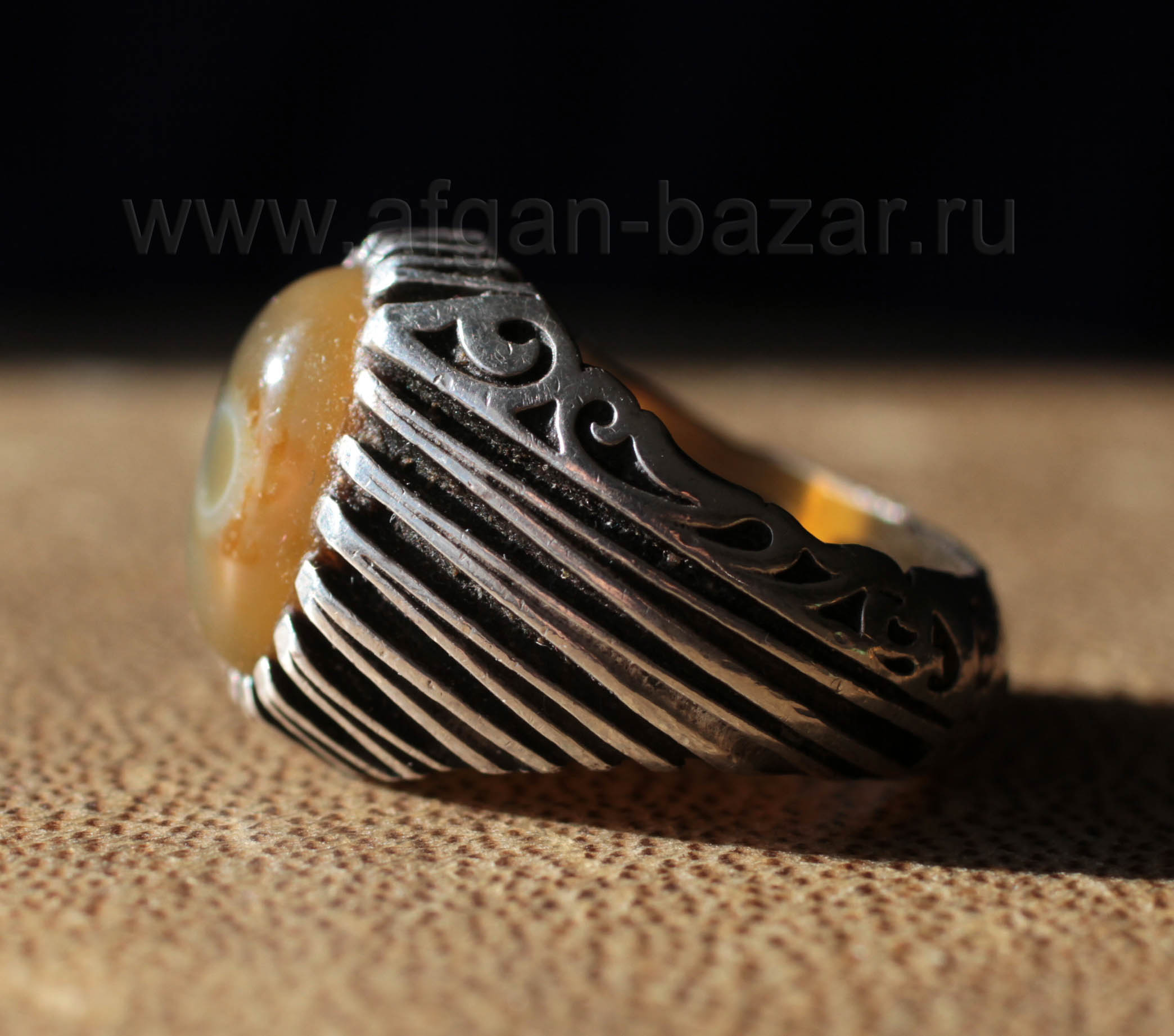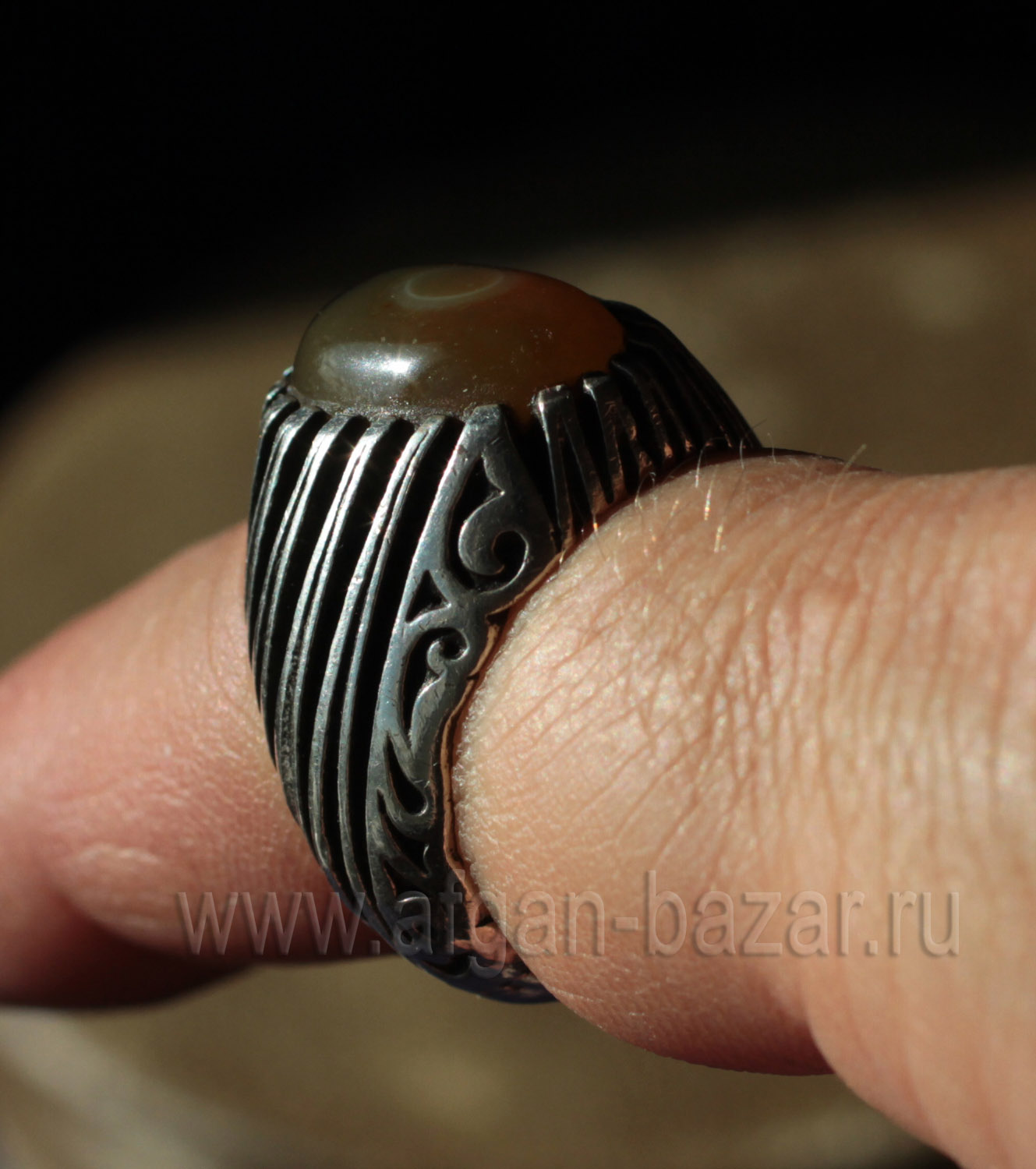 Винтажный иранский мужской перстень-талисман с йеменским глазковым агатом (Aqeek Sulaymani).