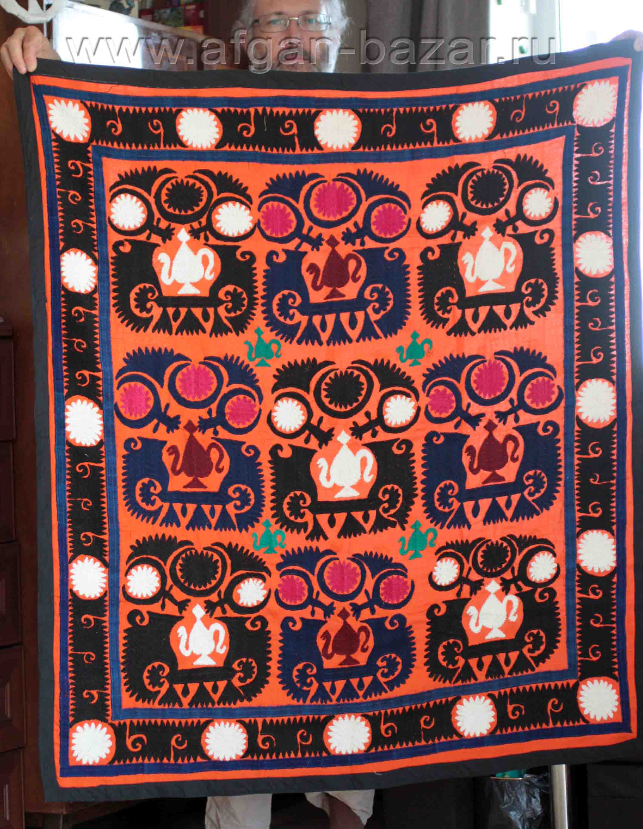 Афганская скатерть-декоративное панно "Сюзанне" или "Парда". Северный Афганистан, узбеки, конец 20 в.