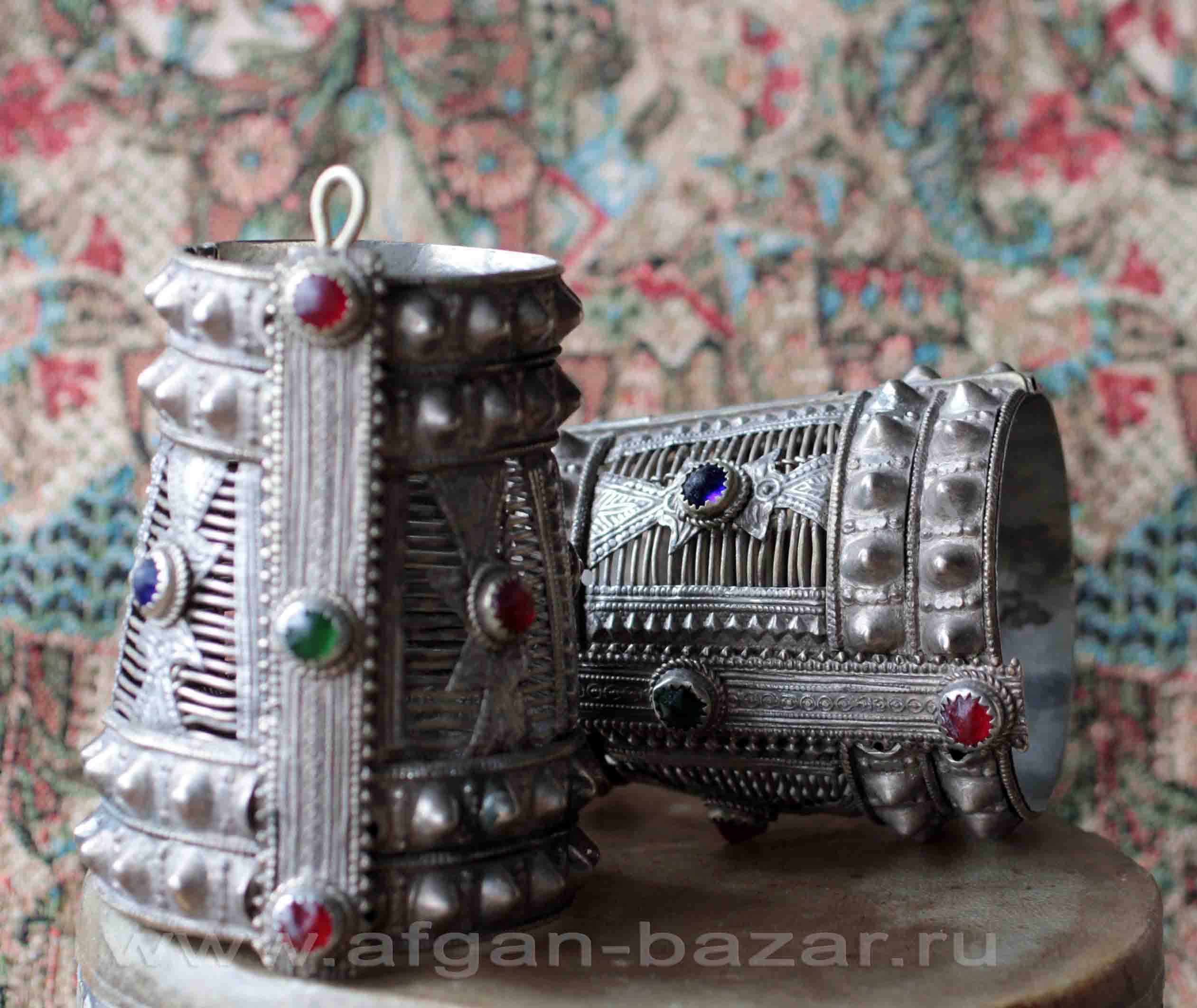 Браслеты декорированы традиционным способом для афганского племени Мангал - с использованием шиповидных чеканных выступов.