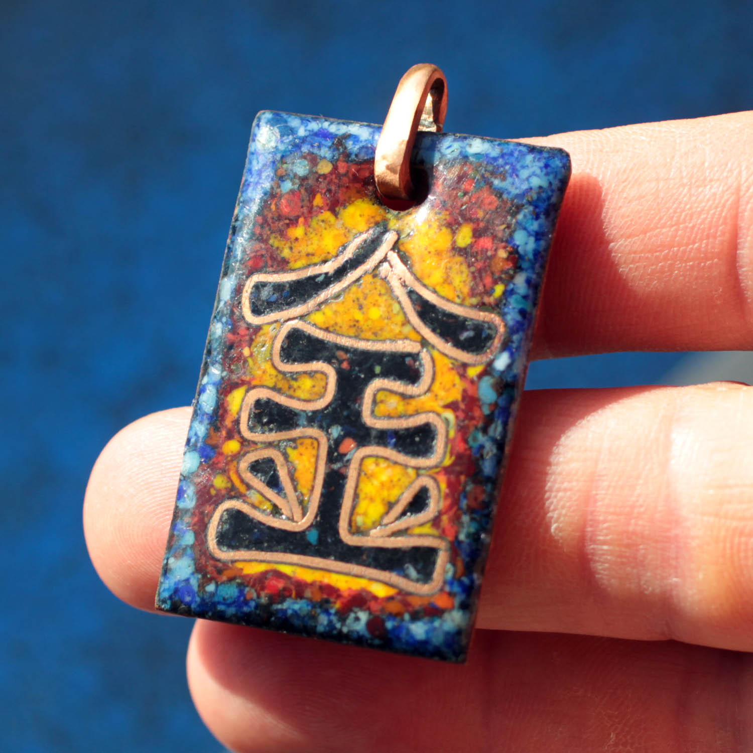 Кулон в китайском стиле с иероглифом Золото, металл. Автор - Емельянова Елена. Медь, горячая перегородчатая эмаль