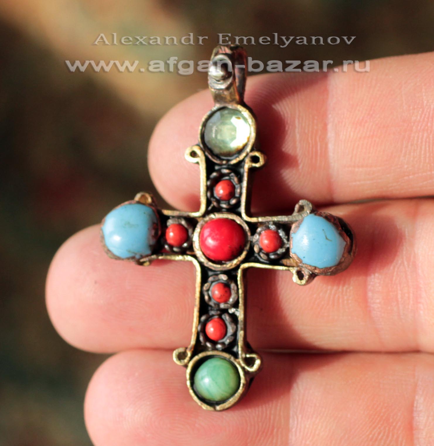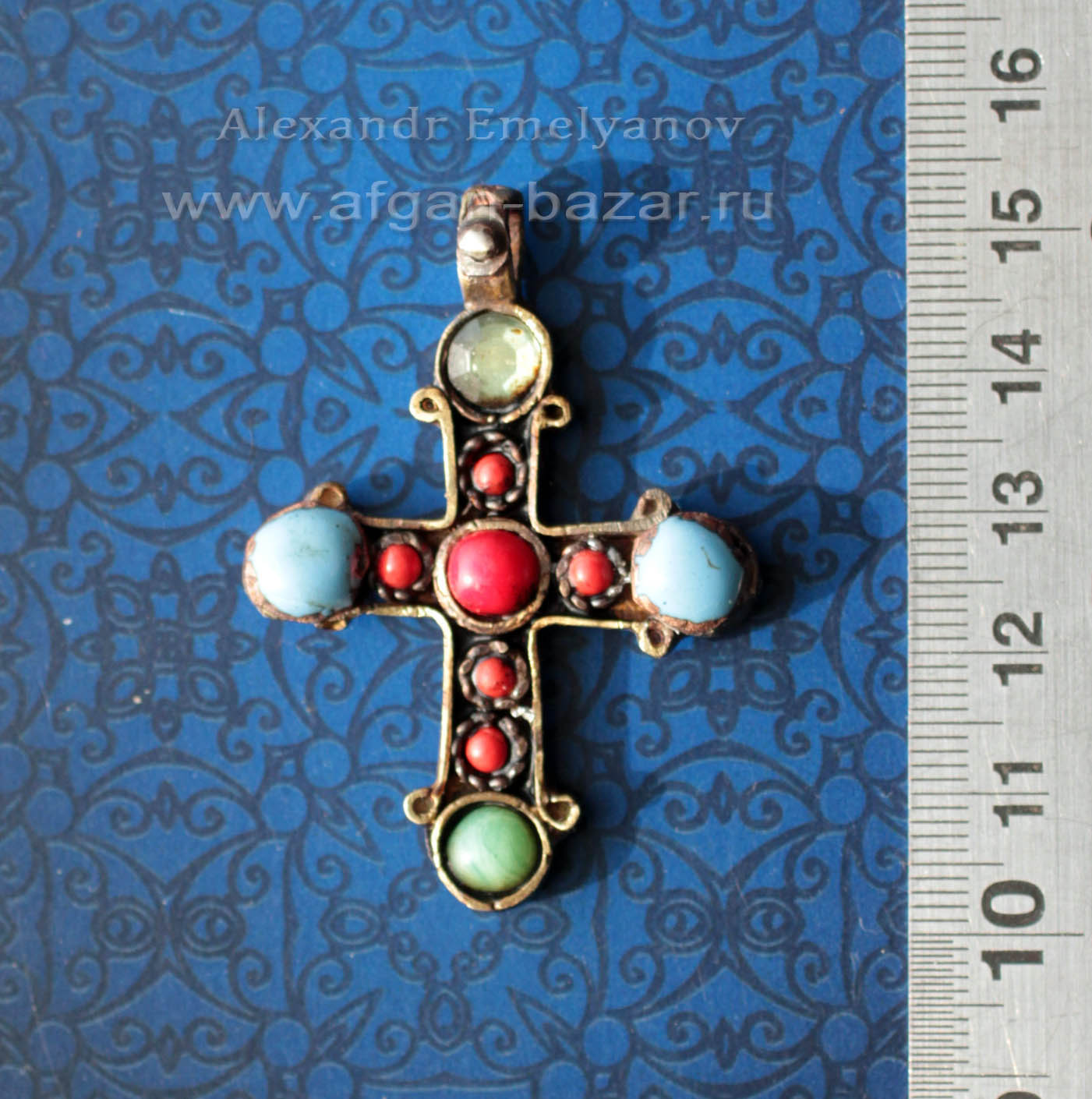 Латунь, зернь, пайка, штампованные накладки на обратной стороне, полученные с помощью старых афганских матриц для басмы.