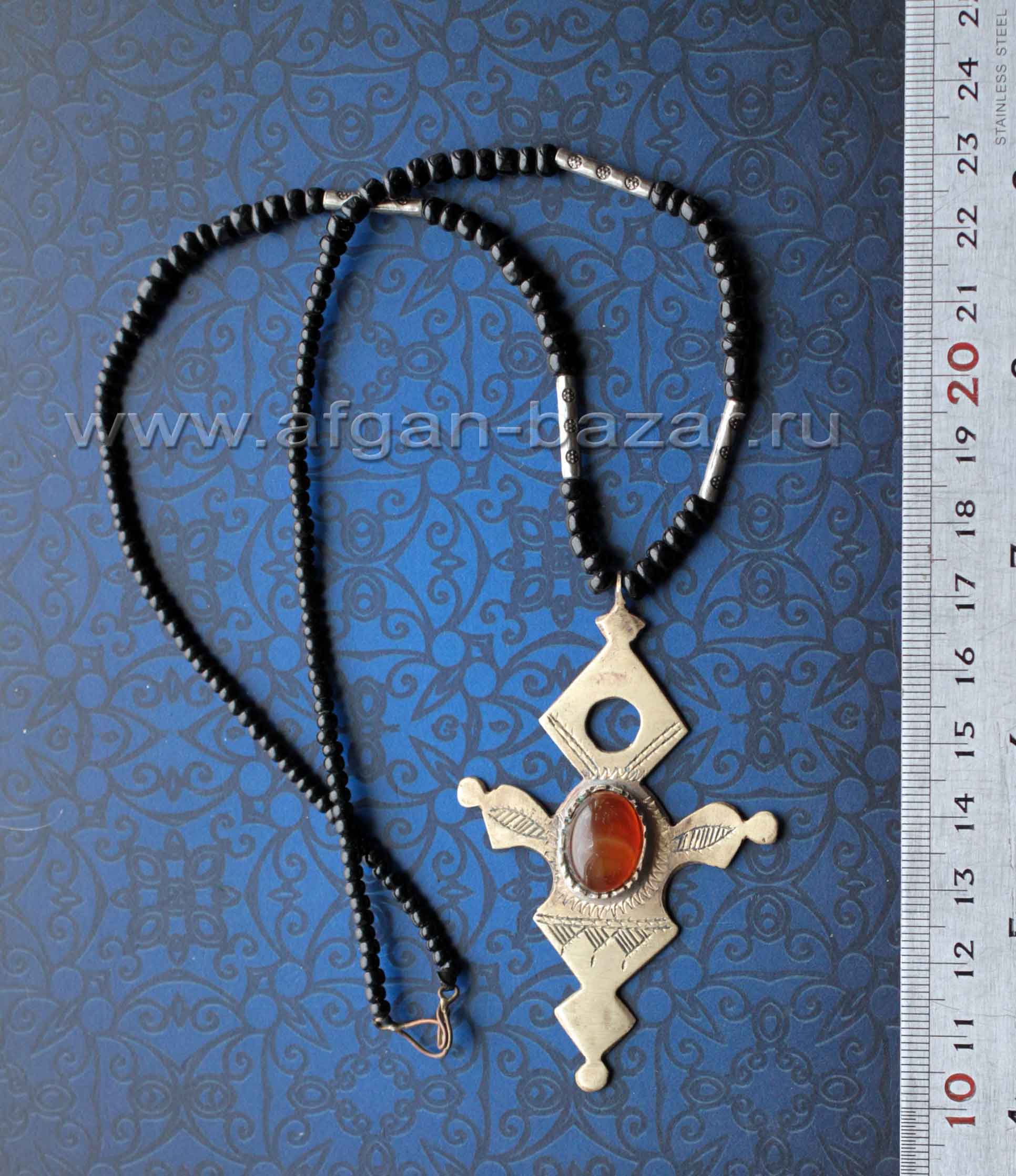 Колье с подвеской в виде туарегского амулета с сердоликовой вставкой.