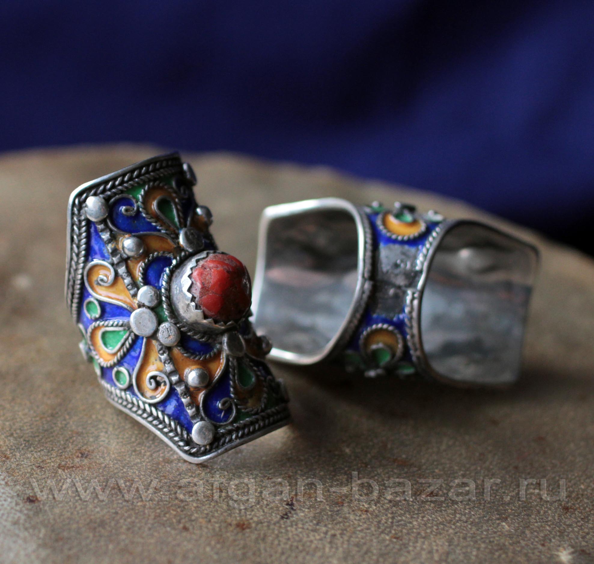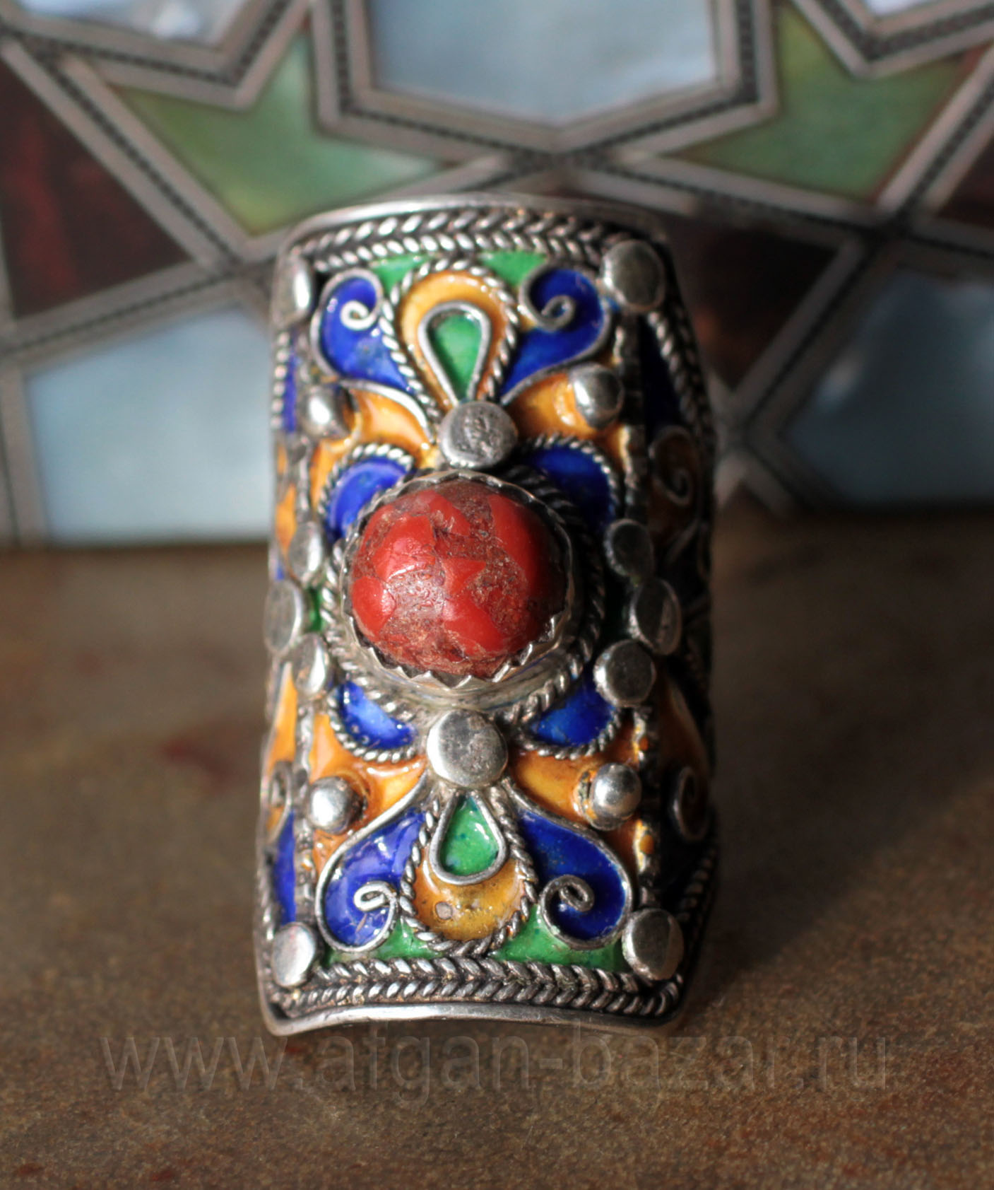 Марокканский перстень в алжирском стиле с горячей эмалью.