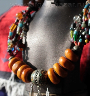 Полихромное колье в стиле Бохо с бусинами под коралл.