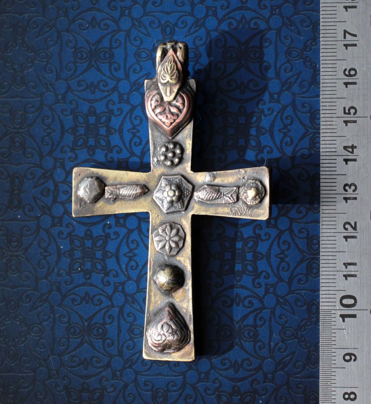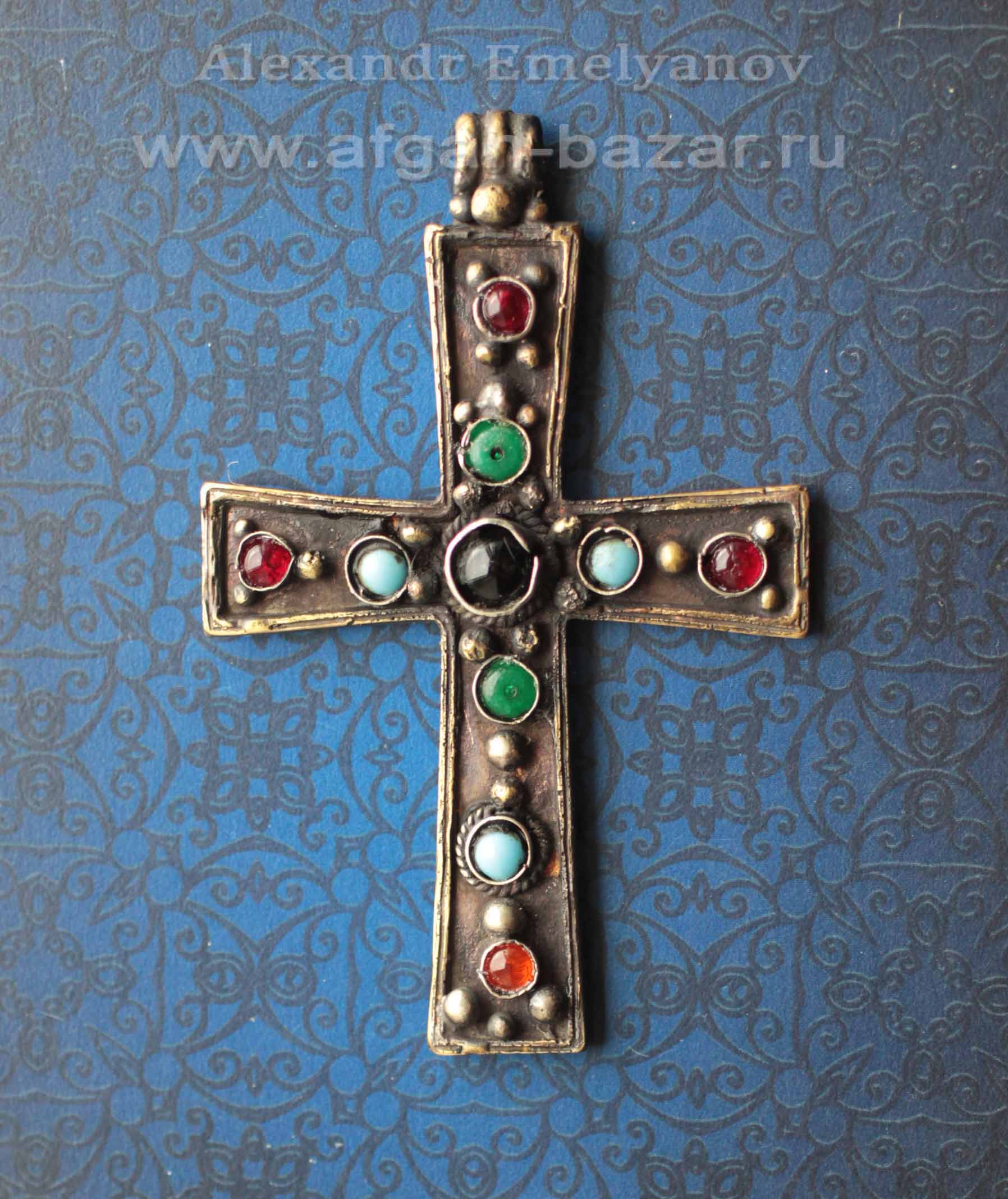 Латунь, зернь, пайка, штампованные накладки на обратной стороне, полученные с помощью старых афганских матриц для басмы.