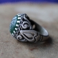 Вставка - хризопраз или жадеит с ручной гравировкой. Надпись на арабском языке не поддается прочтению, но очевидно это короткая молитва или зикр.