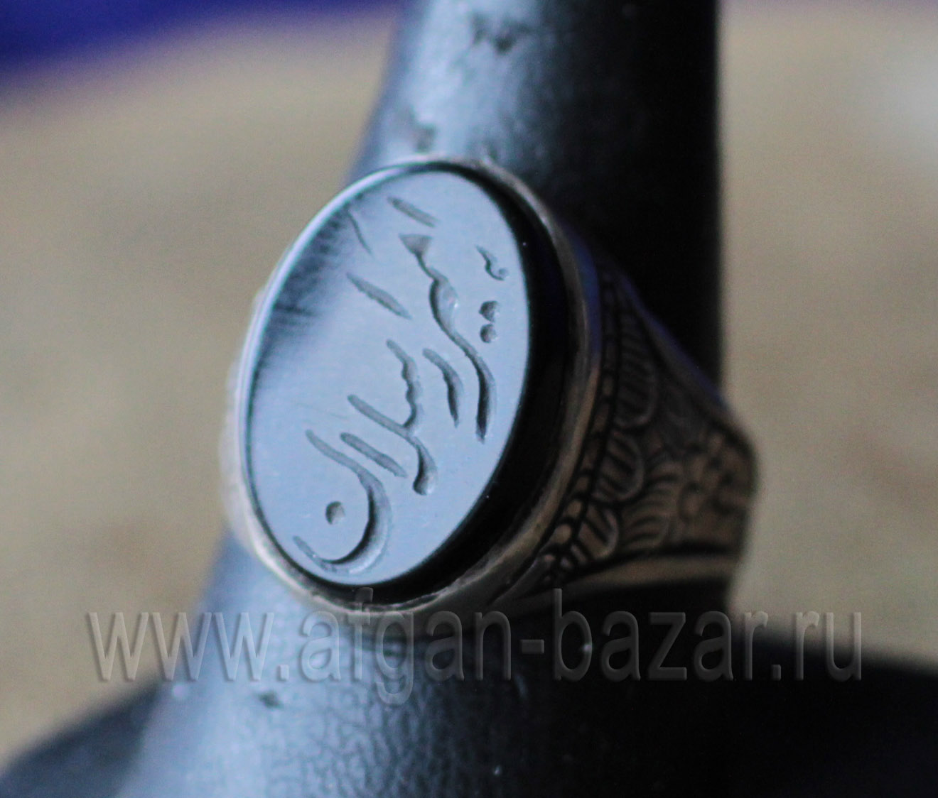 Вставка - агат с ручной гравировкой, надпись - امیر ارسلان (Амир Арслан - имя героя древнего персидского эпоса).