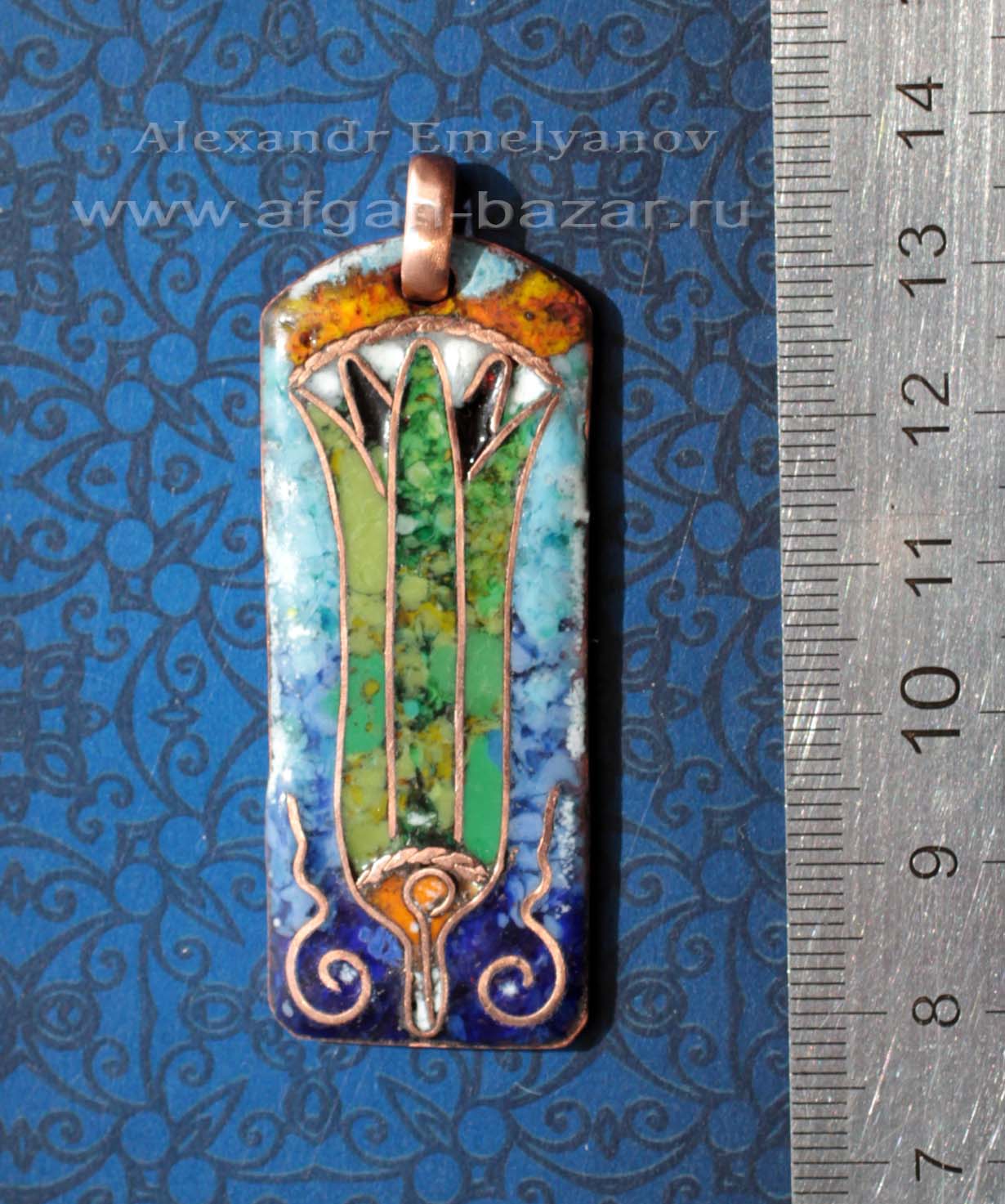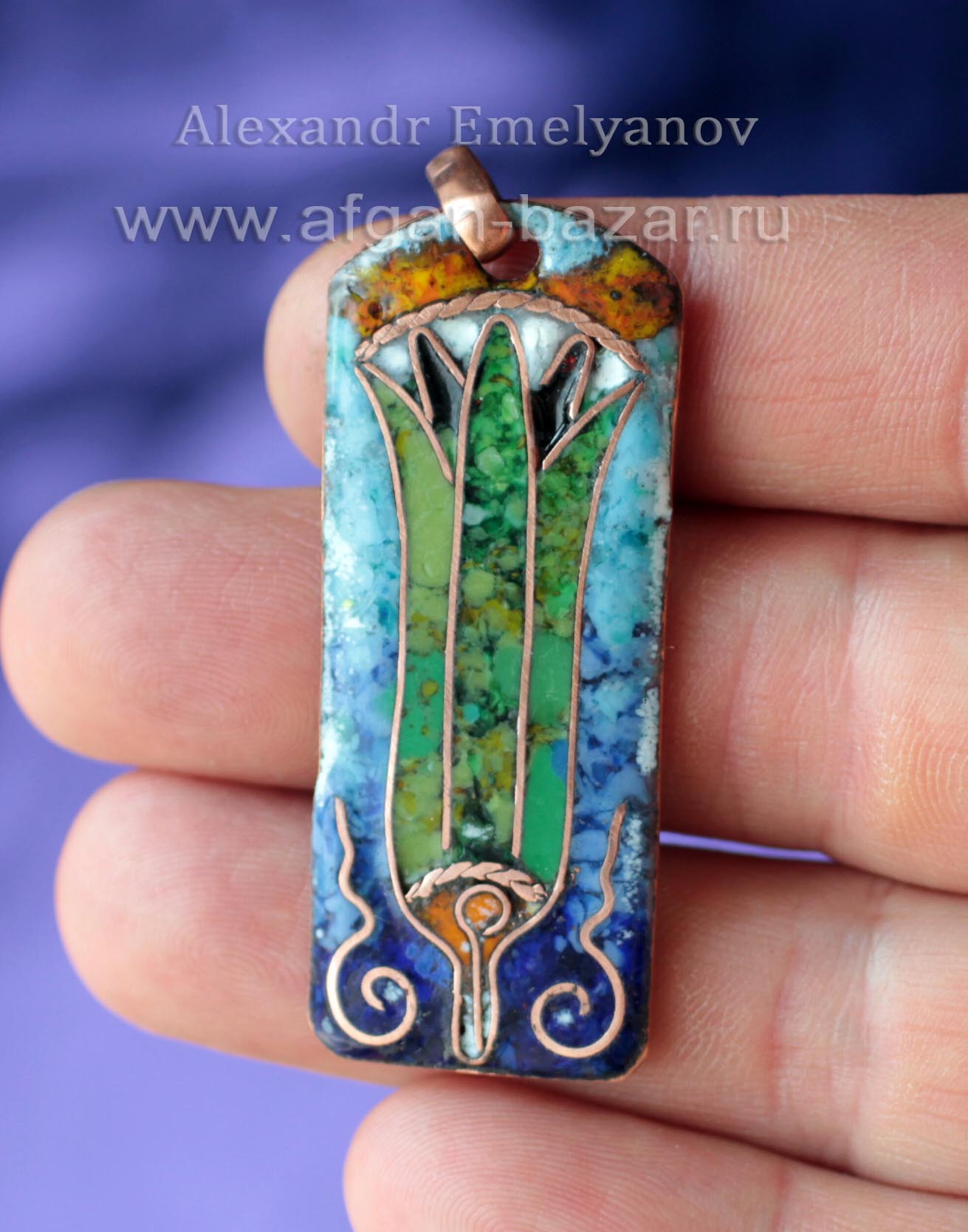 Кулон в древнеегипетском стиле "Цветок водяной лилии" (Египетский Лотос). Автор - Александр Емельянов. Медь, горячая перегородчатая эмаль