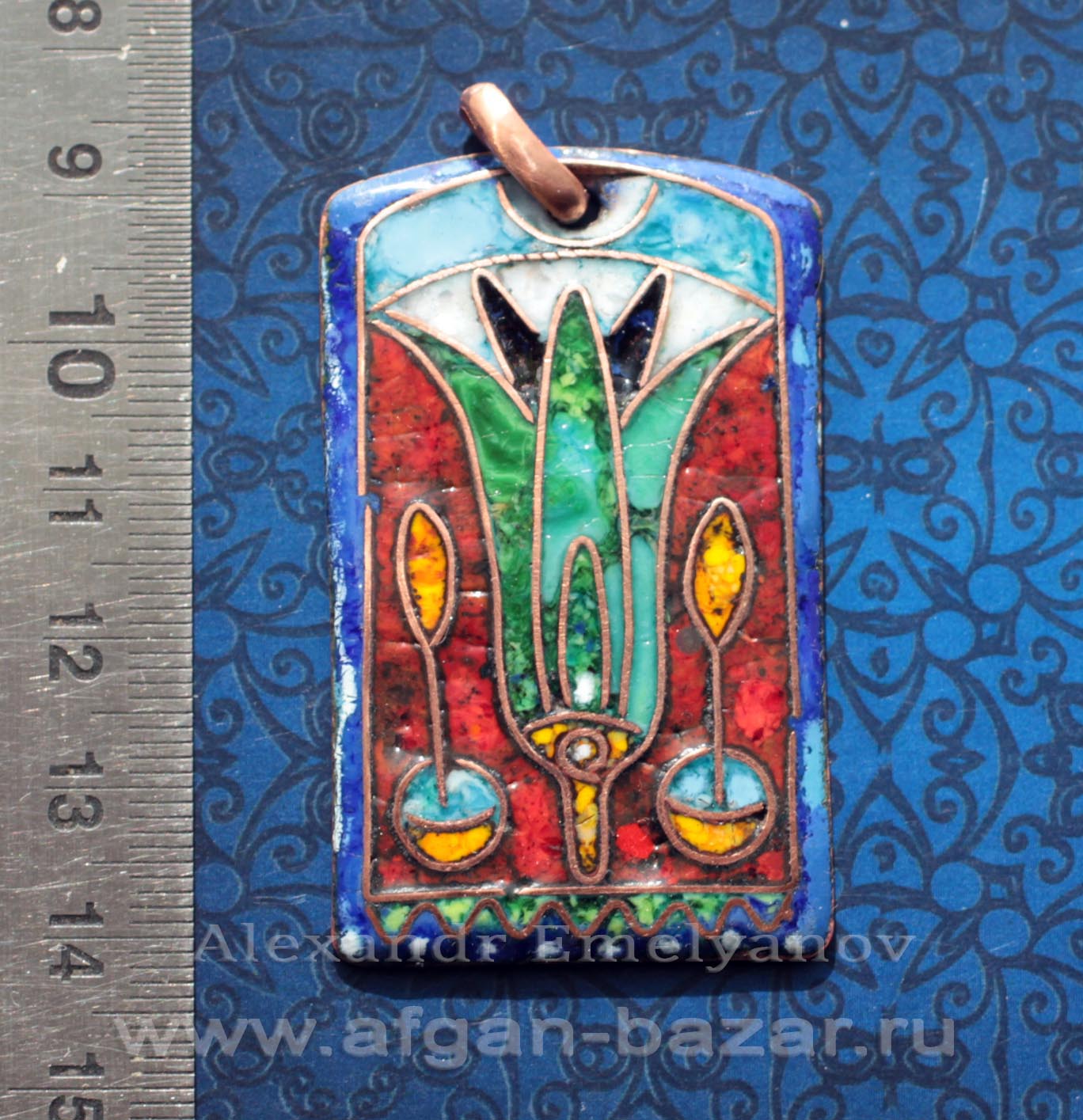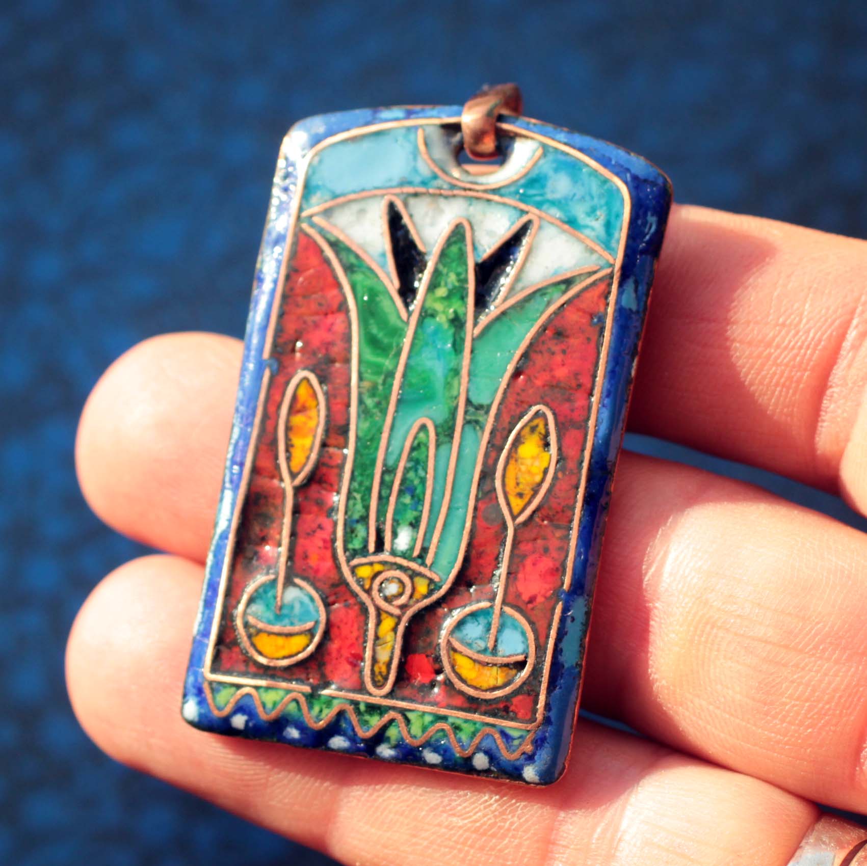 Александр Емельянов. кулон в египетском стиле "Цветок водяной лилии". Медь, горячая перегородчатая эмаль