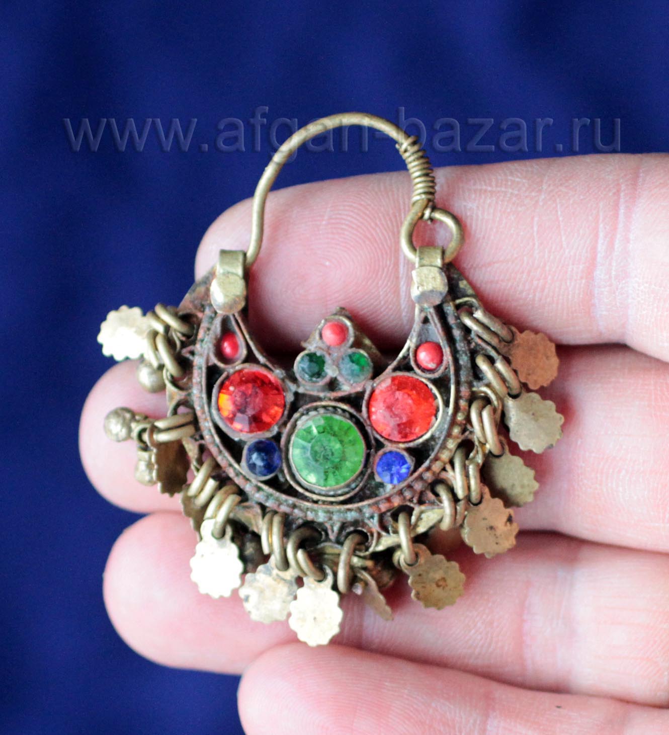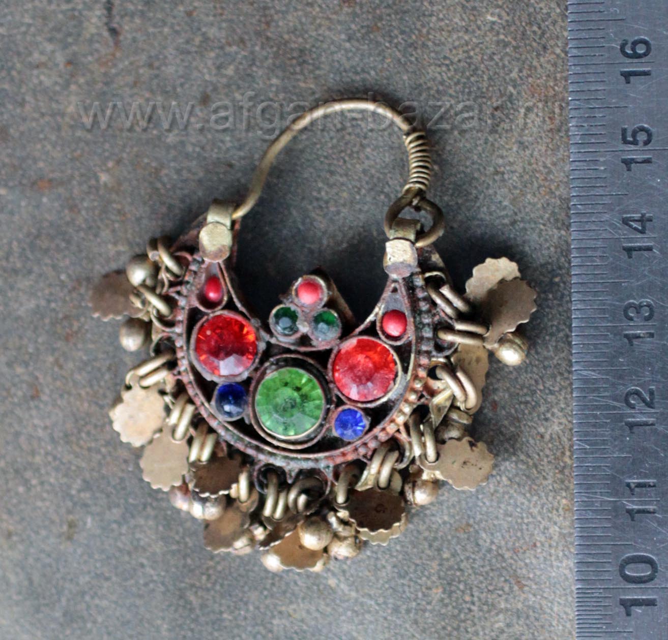 Один из наиболее популярных типов традиционных афганских серег и височных подвесок. Серьги в виде полумесяца широко распространены среди кочевых племен Кучи Афганистана и Пакистана.
