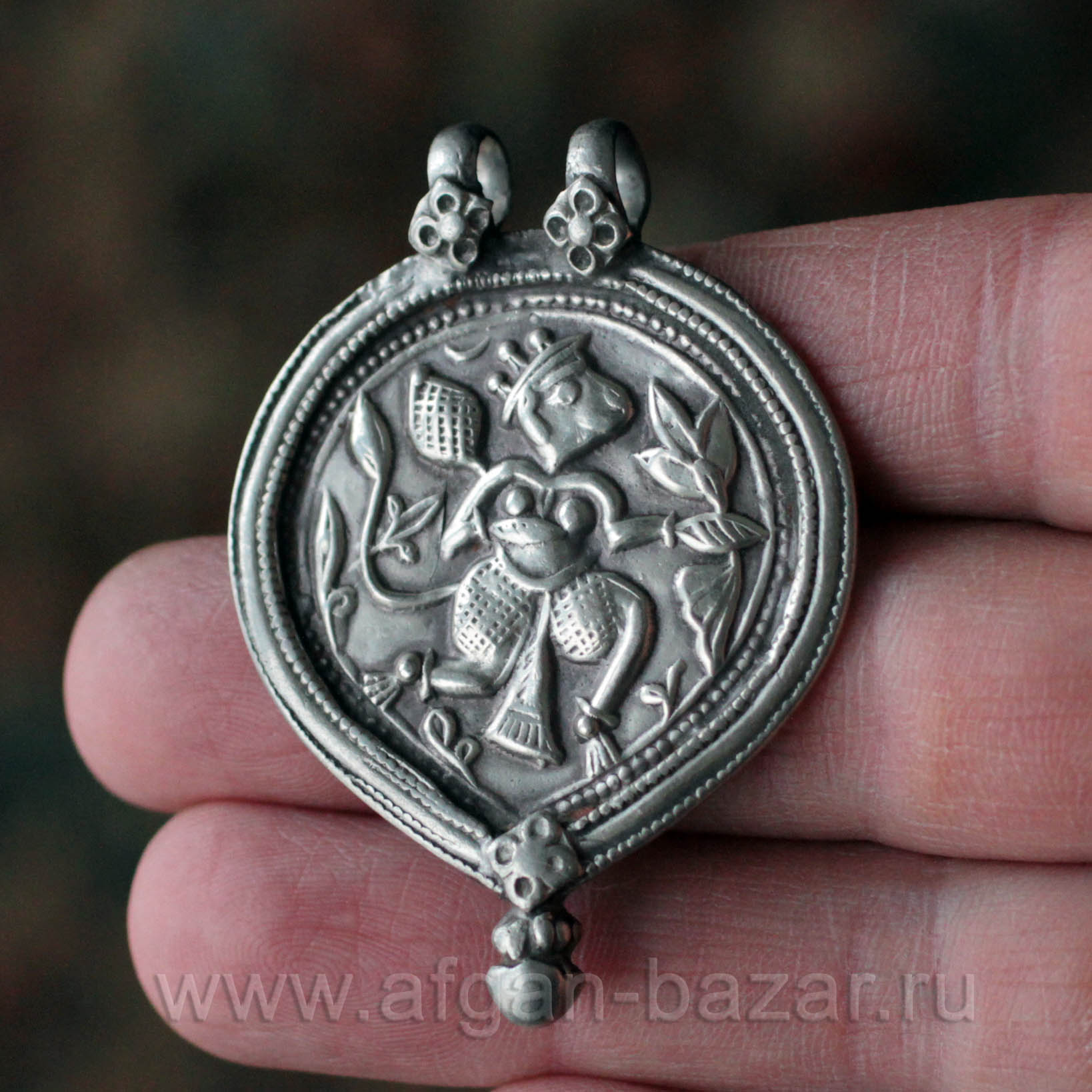 Старый индийский амулет с изображением Ханумана. Индия, Гуджарат или Раджастан, племена Банджара, 19- первая половина 20-го века