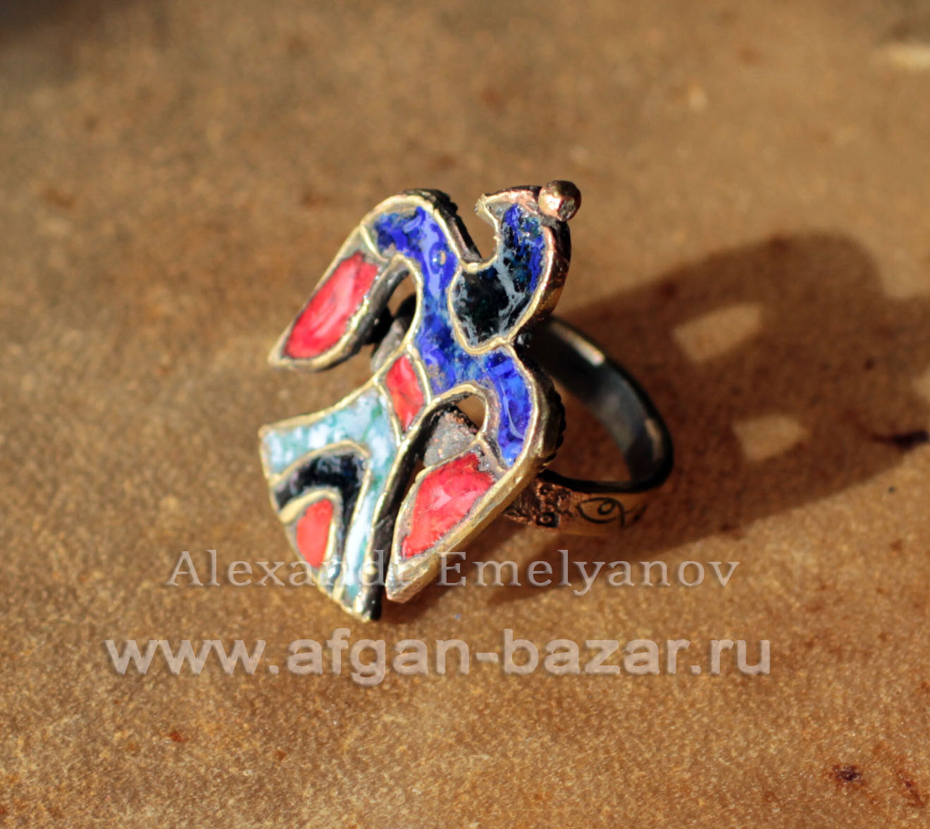 Перстень декорирован горячей выемчатой эмалью с применением авторских разработок Александра Емельянова по реконструкции технологии средневековых горячих эмалей.