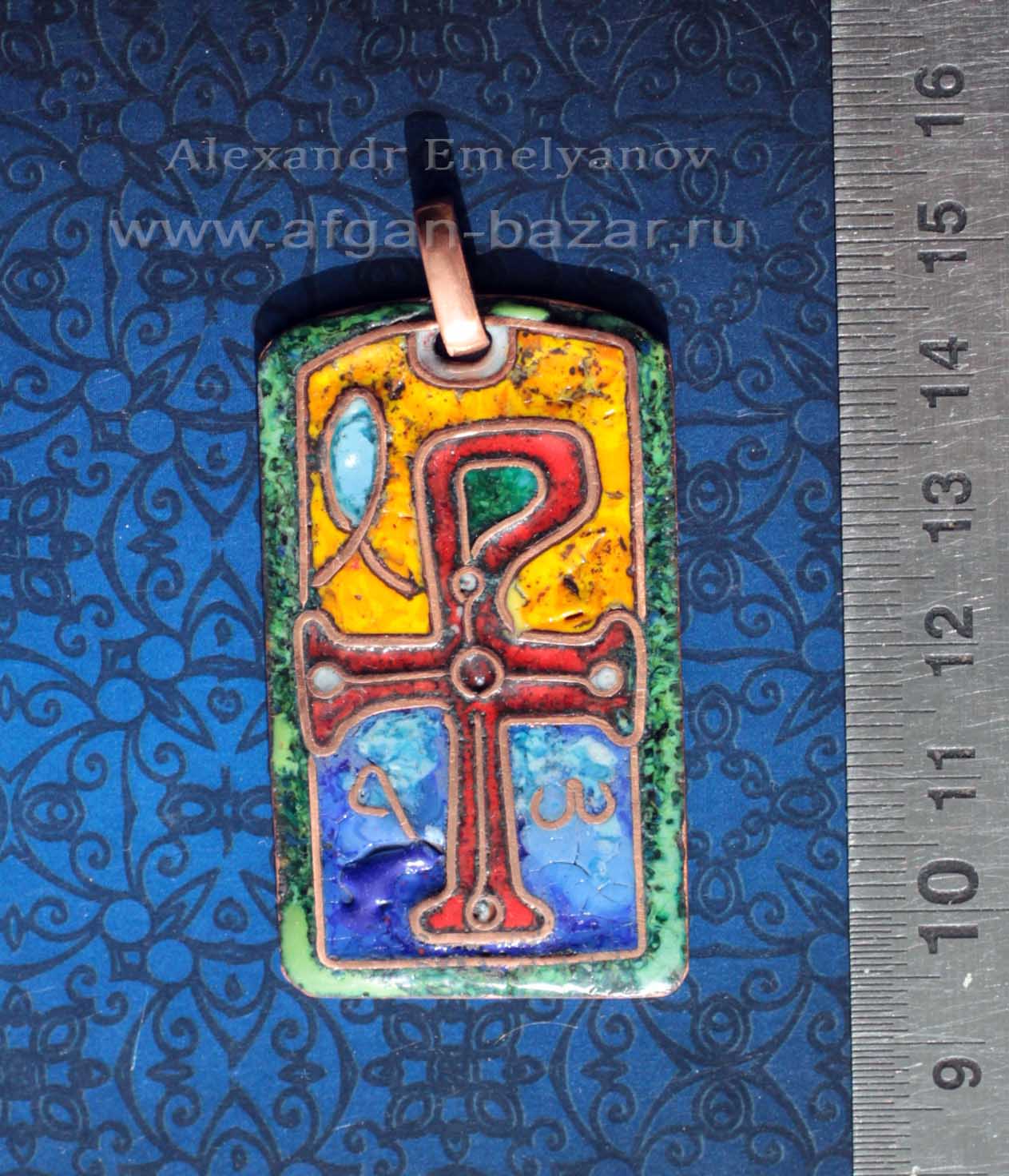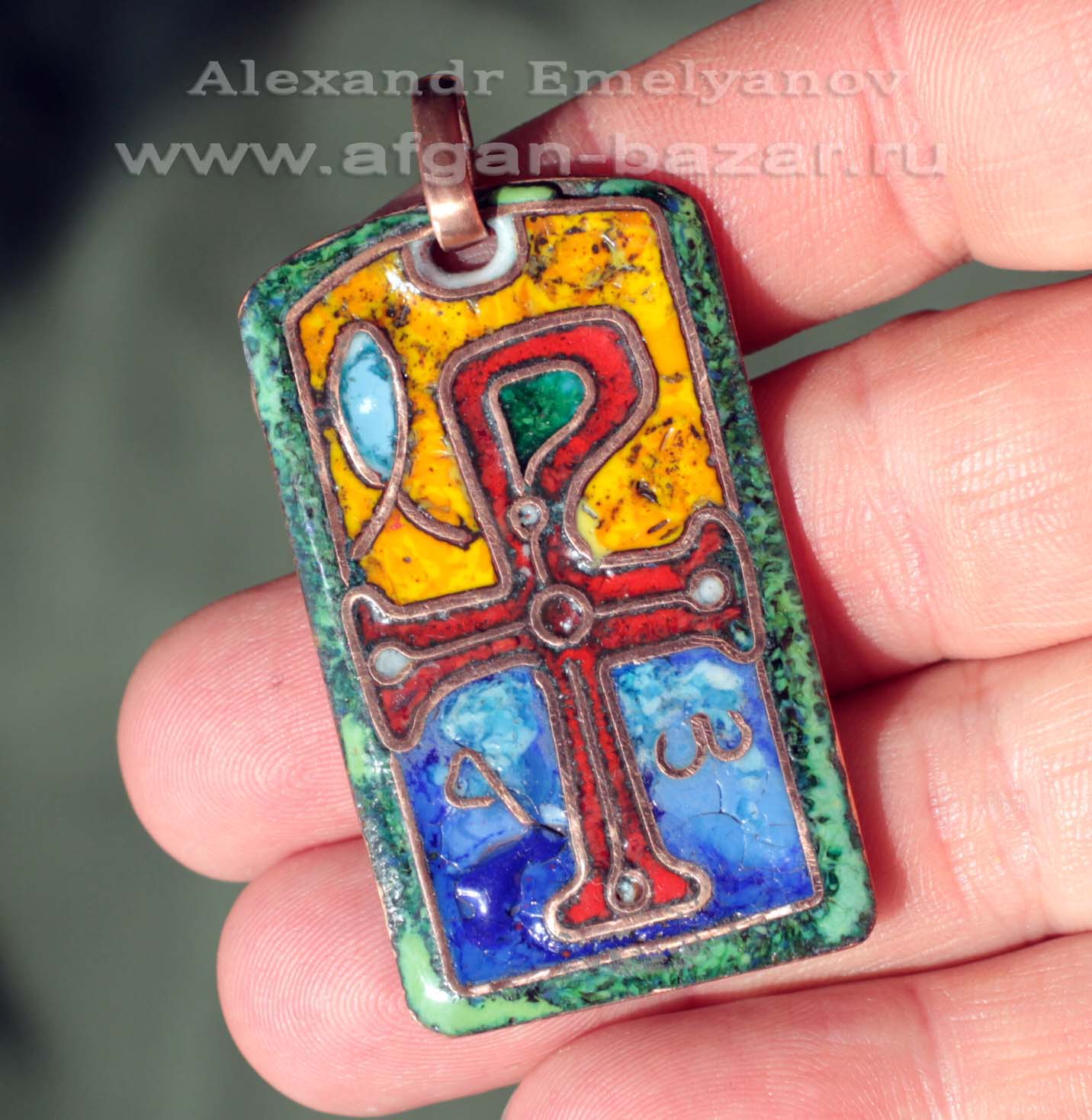 Александр Емельянов. Кулон "Хризма" (раннехристианская символика, анаграмма Христа). Медь, горячая перегородчатая эмаль