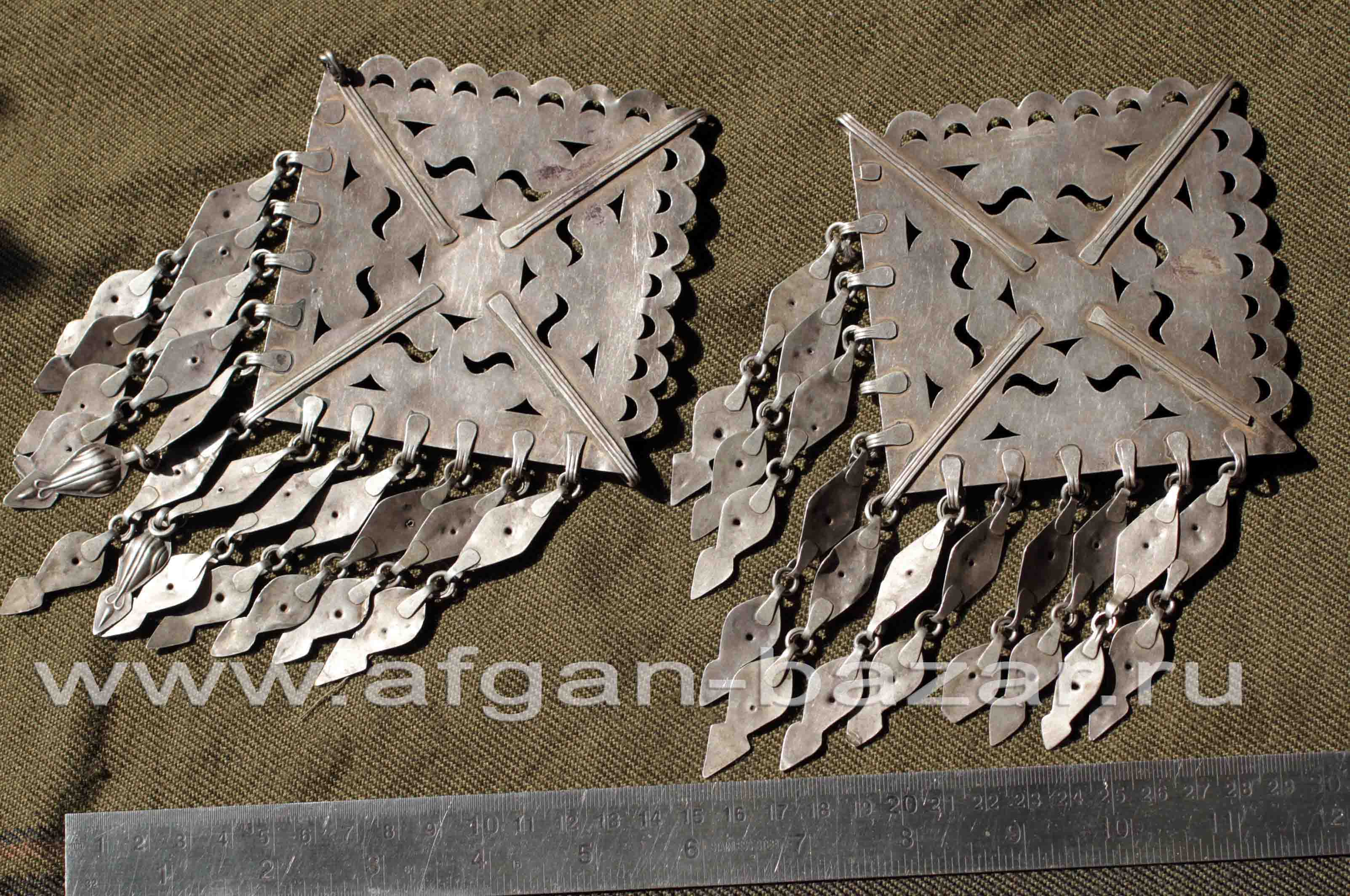 Пара туркменских подвесок-пекторалей, "Чанга", украшение костюма - застежки-амулеты для женского халата - продано