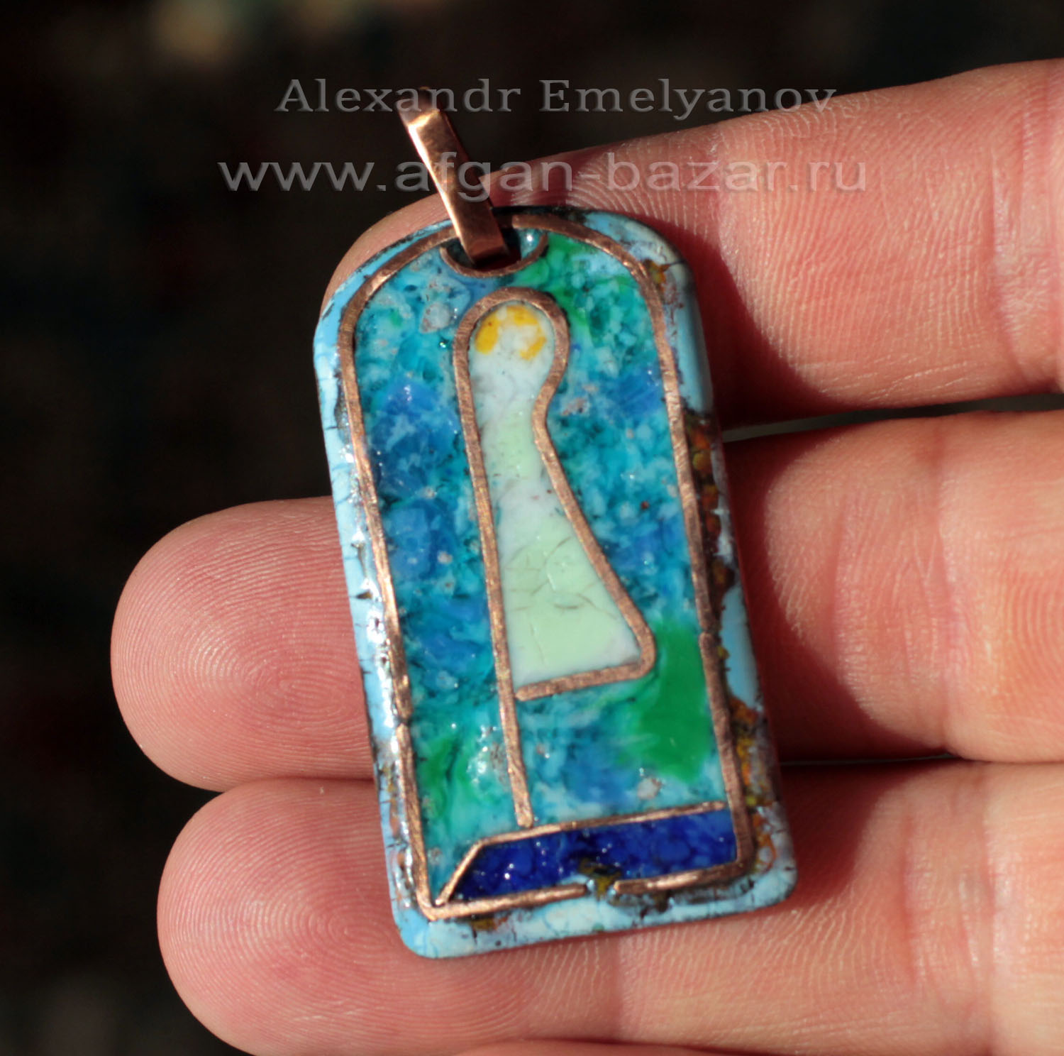 Кулон в древнеегипетском стиле "Перо Маат" (Древнеегипетский символ Истины и Закона). Автор - Александр Емельянов. Медь, горячая перегородчатая эмаль - Alexandr Emelyanov - Hot Enamel Pendant in Egyptian style - feather of Maat