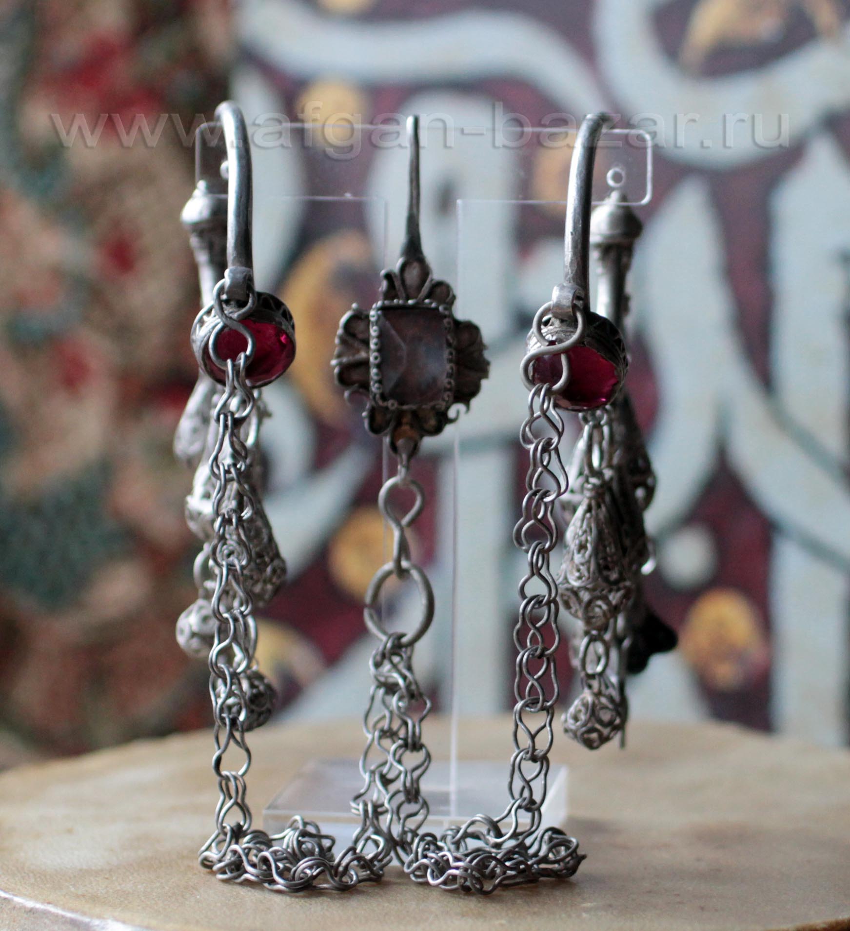 Ближний Восток и Северная Африка, Виртуальный музей декоративно-прикладного искусства Востока, серебро, Виртуальный музей, вставки - раковины/коралл, Тунис/Ливия/Алжир, серьги и височные подвескиСтарые берберские серьги Марокко, Анти-Атлас, регион Jbel Sirwa, берберы племени "Айт Ваузгит" (Ait Ouaouzguit), 20-й век