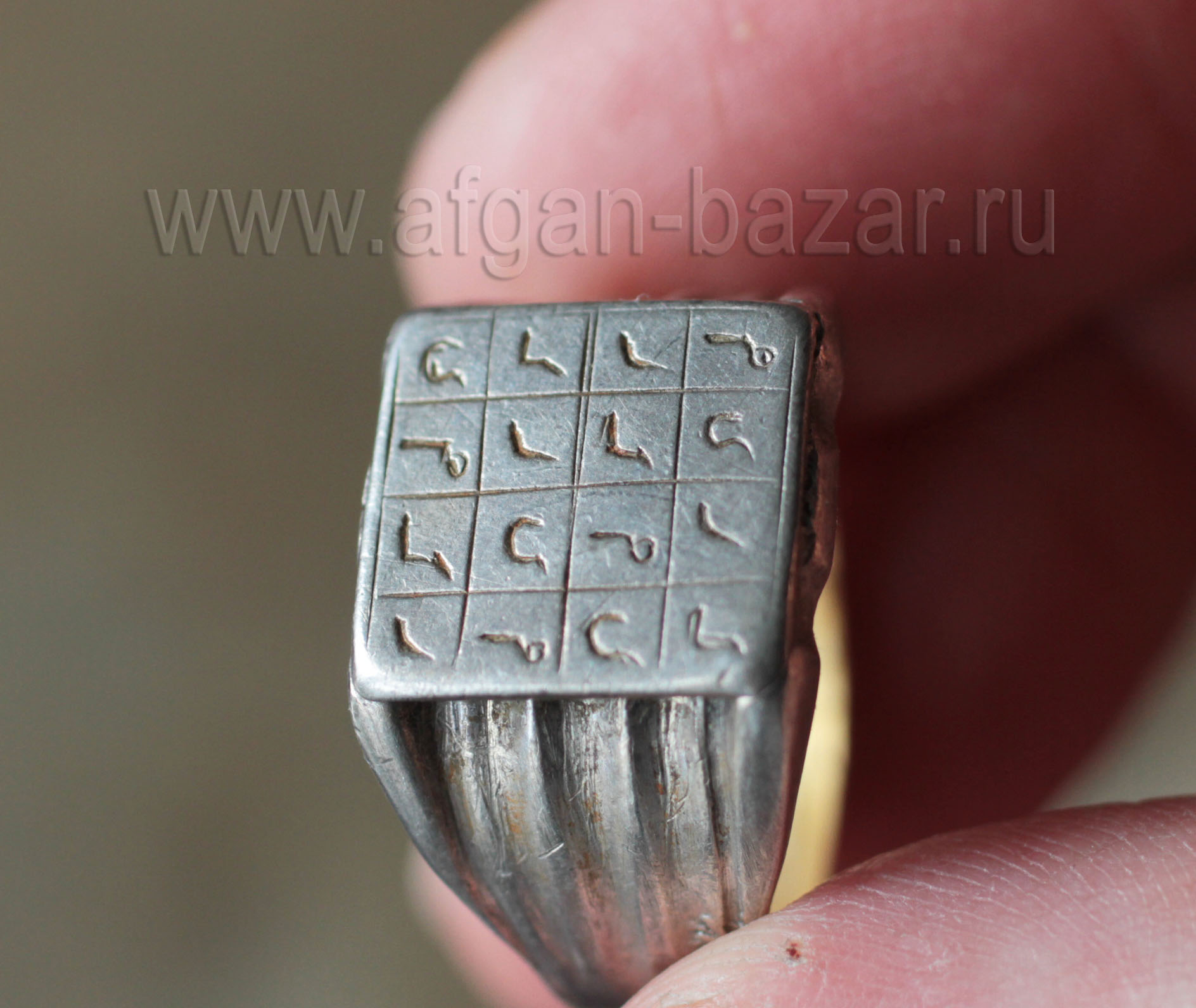 Виртуальный музей декоративно-прикладного искусства Востока, металл, Туркменские украшения, Центральная и Южная Азия, Виртуальный музей, вставки - стекло/керамика, подвески и амулетыВинтажный иранский перстень с магическим квадратом. Иран, 20 в. Размер - 18