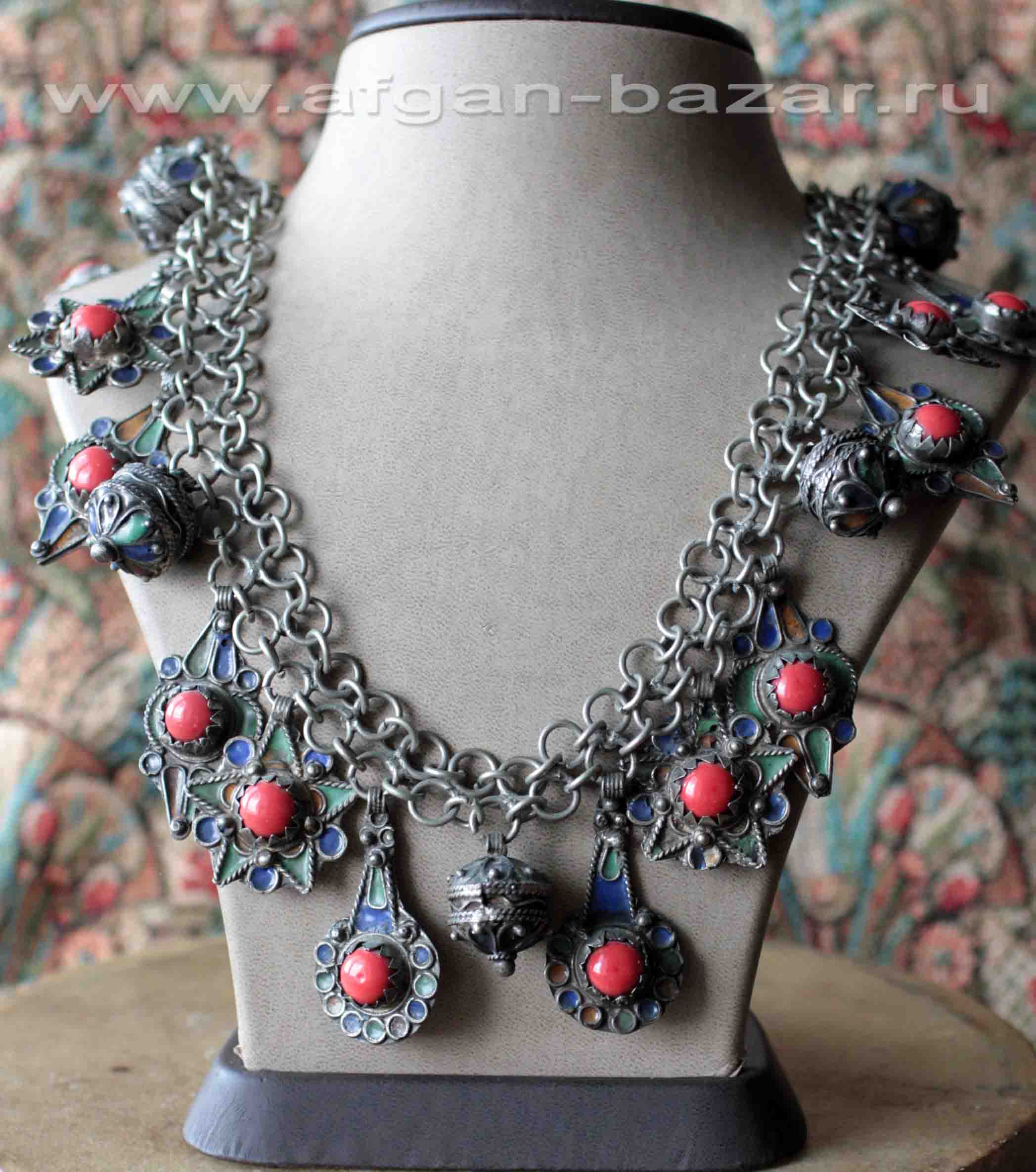 Ближний Восток и Северная Африка, Виртуальный музей декоративно-прикладного искусства Востока, металл, Украшения, этнические/винтажные, вставки - эмаль/мастика, Колье, подвески, амулеты, Тунис/Ливия/Алжир, Колье/чокеры/гривны, Африканские и арабские украшения, Марокко и Западная Сахара, Тунис, Ливия, АлжирСтаринные алжирские серьги с кораллами и перегородчатой эмалью. Алжир, Кабилья, 19 - первая половина 20 вв.