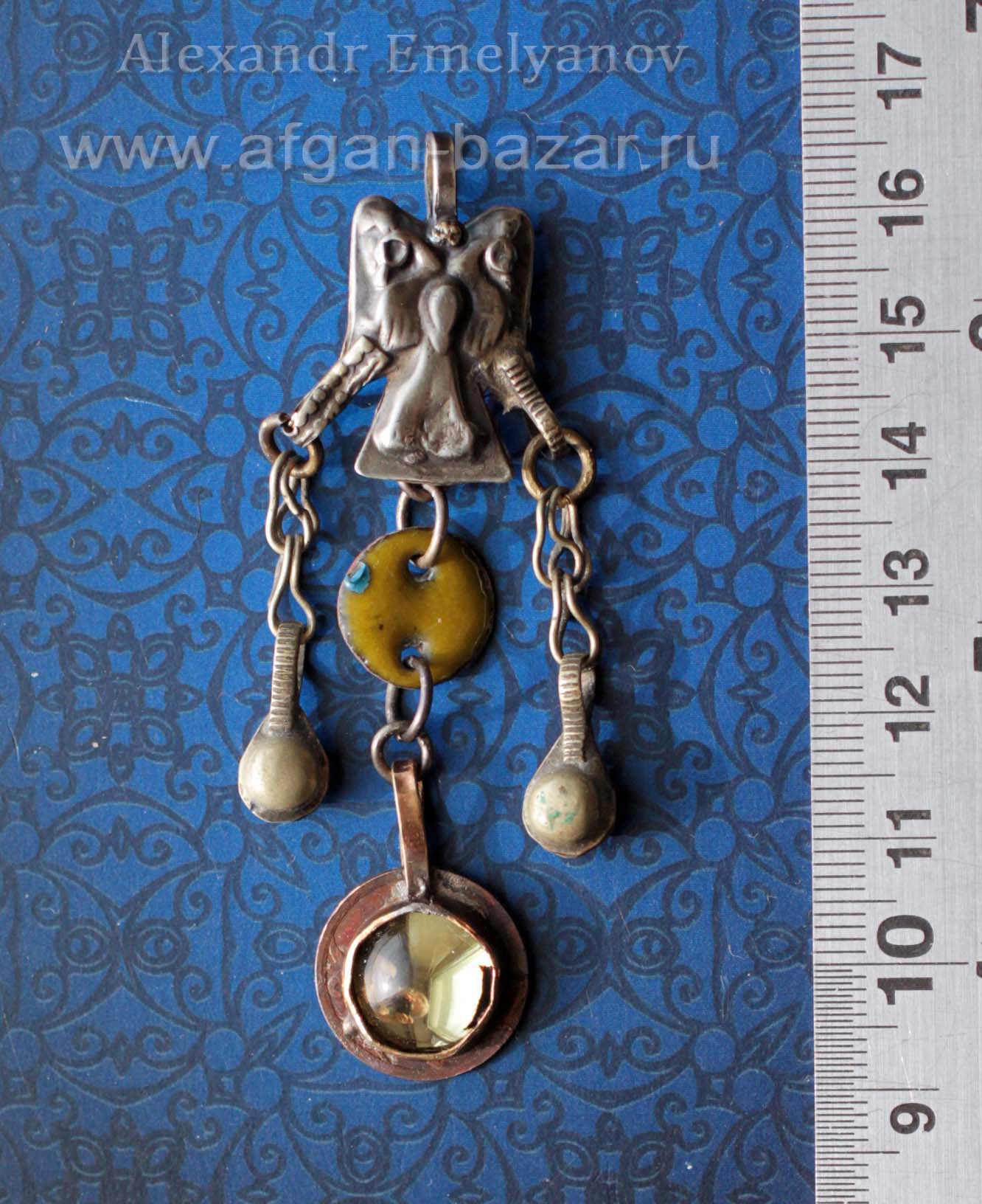 лоты, металл, Фурнитура, лоты из остатков, кнопки и коннекторы без подвесов, Украшения народности Хазара, Фурнитура, коннекторы, кучи фурнитура, кулоны, подвески, Афганистан и Средняя Азия, Племенные украшения Кучи, Этническая фурнитура для расшивки костюмовПодвеска-кулон, сделанная из деталей старых афганских украшений и монеты