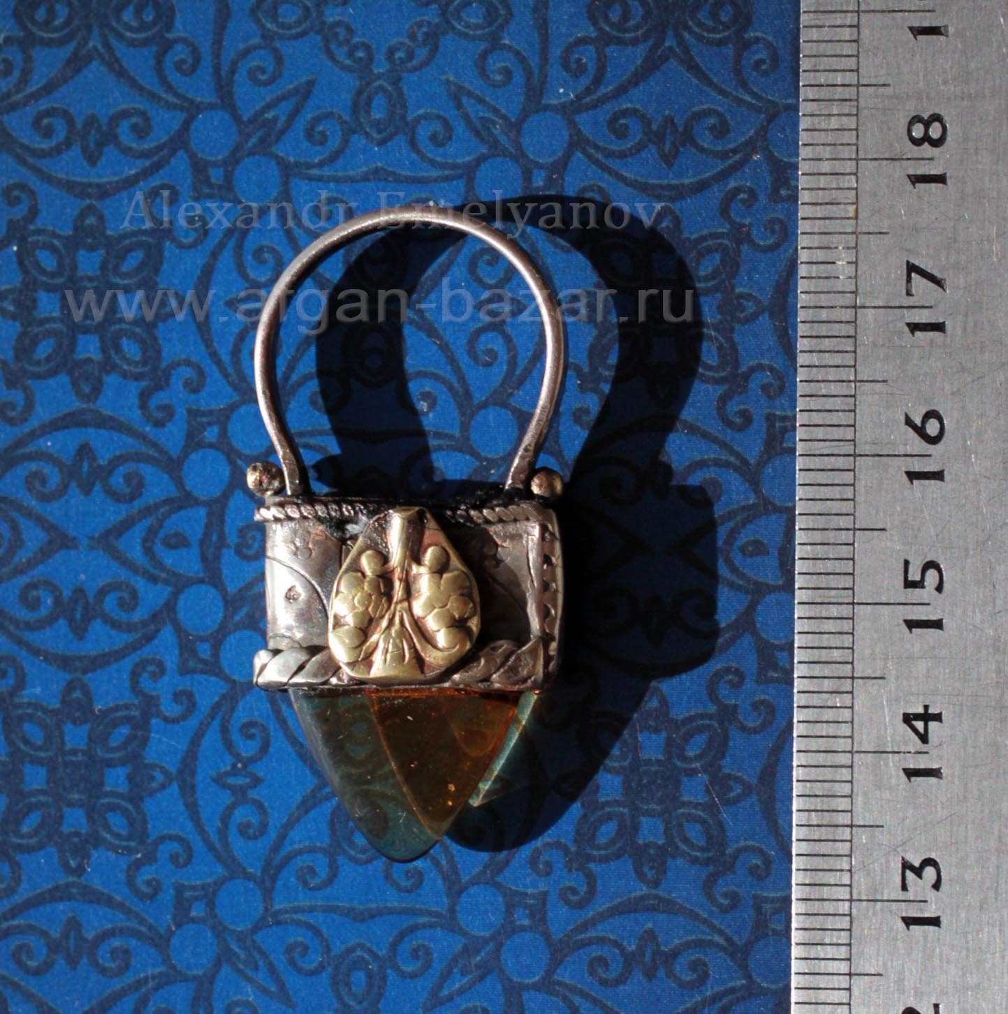 Авторские кольца и перстни, металл, Украшения, Украшения в этническом стиле, размер 17 - 17,5, вставки - стекло/керамика, Авторские ювелирные украшения в этническом стиле, реконструкция античных и средневековых украшений, Йемен, Аравия, Эфиопия и экваториальная АфрикаПодвеска-кулон, сделанная из детали старого афганского украшения