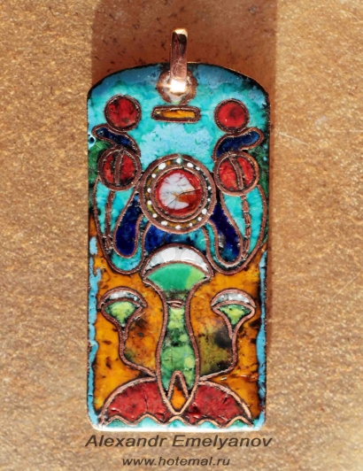 Александр Емельянов. кулон "День и ночь". Медь, горячая перегородчатая эмаль